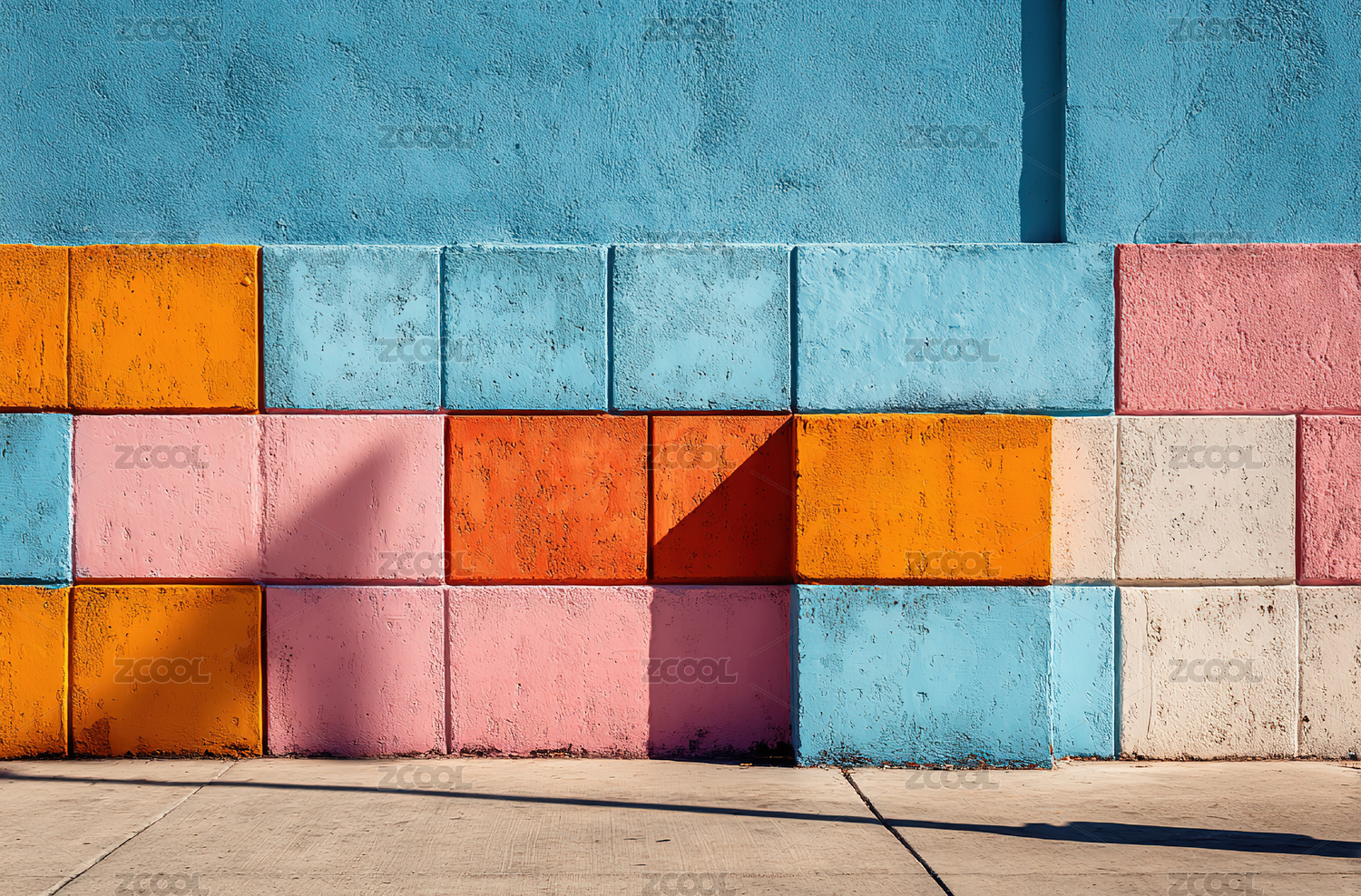 城市街道创意社区地面彩色砖纹艺术涂鸦