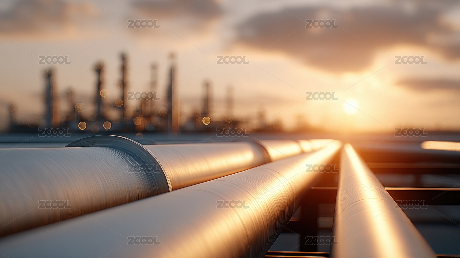 工业管道与夕阳主题