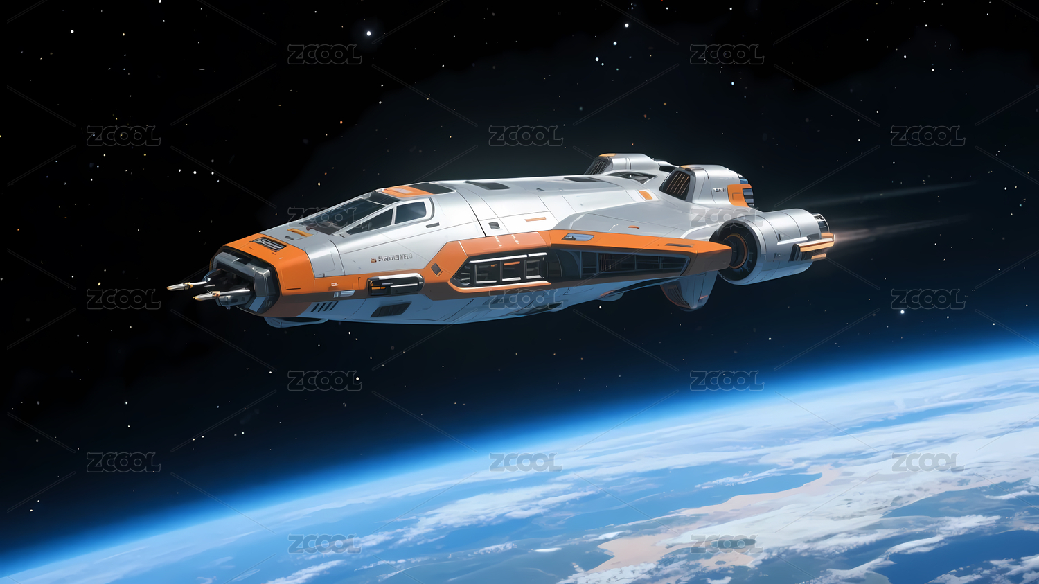橙白飞船遨游太空