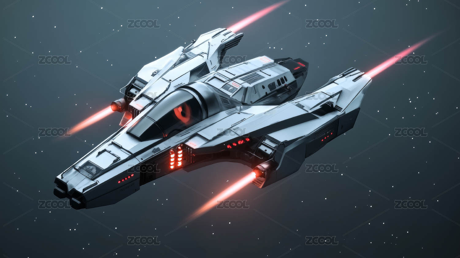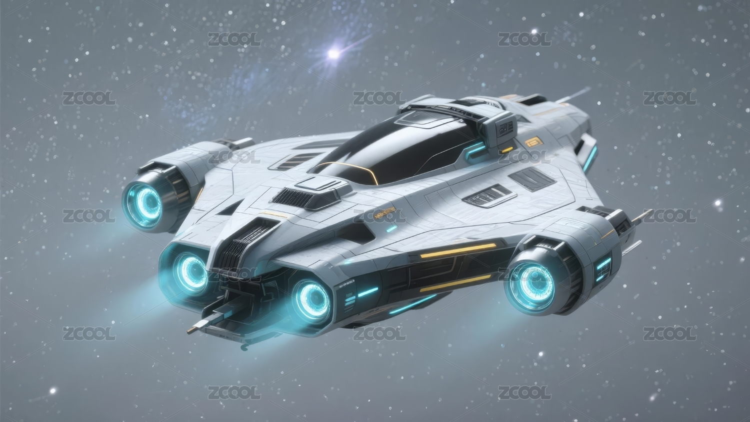 白色宇宙飞船飞行场景