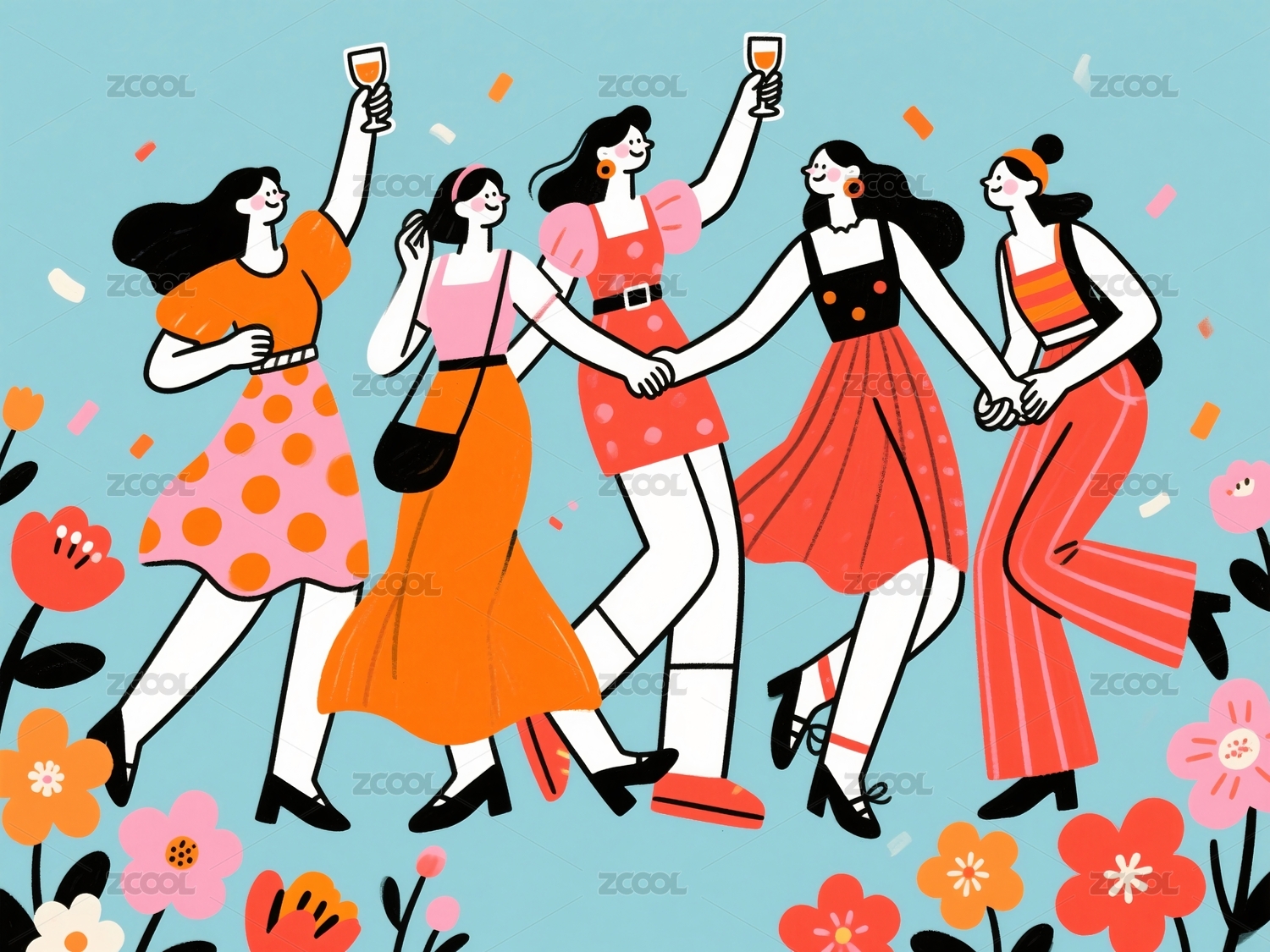 插画中起舞的时尚女性