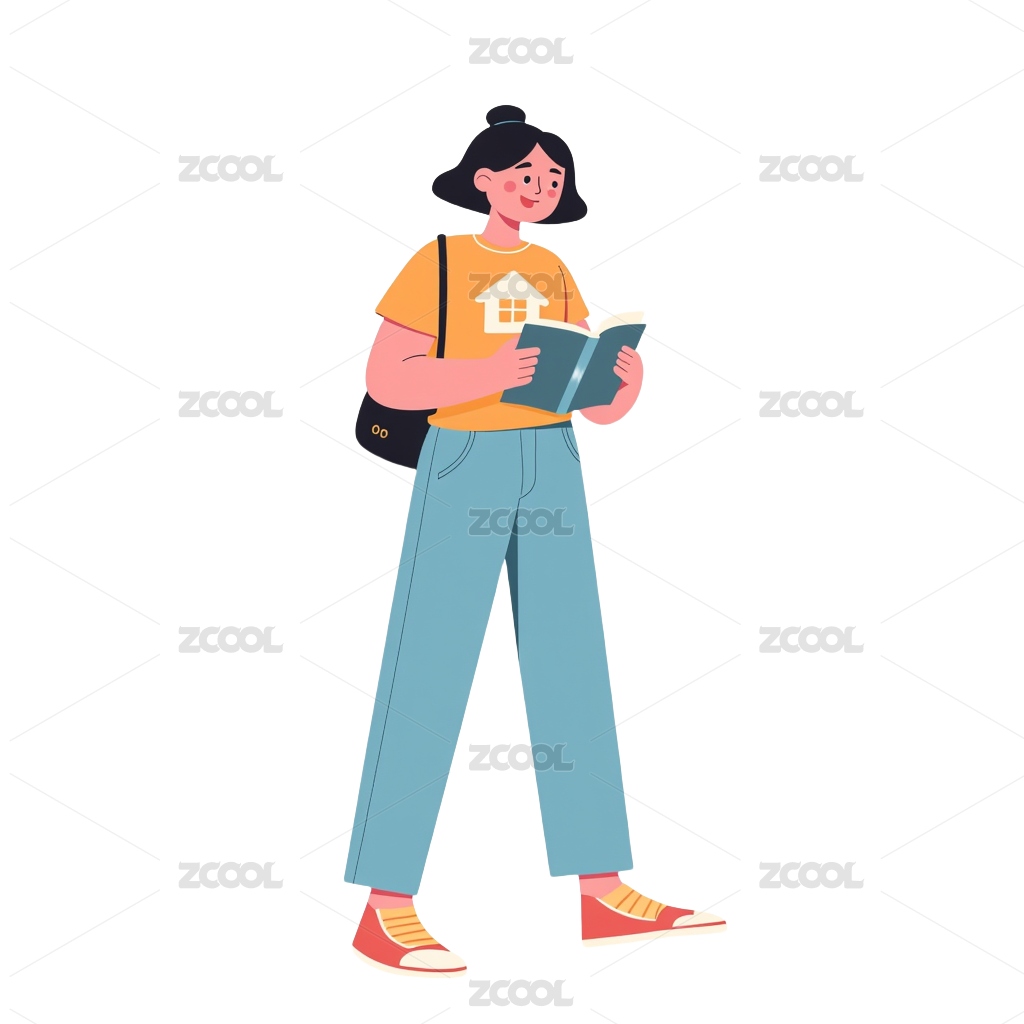 插画,教学,插图,配图,贴纸,看书,学习,阅读,充电学习