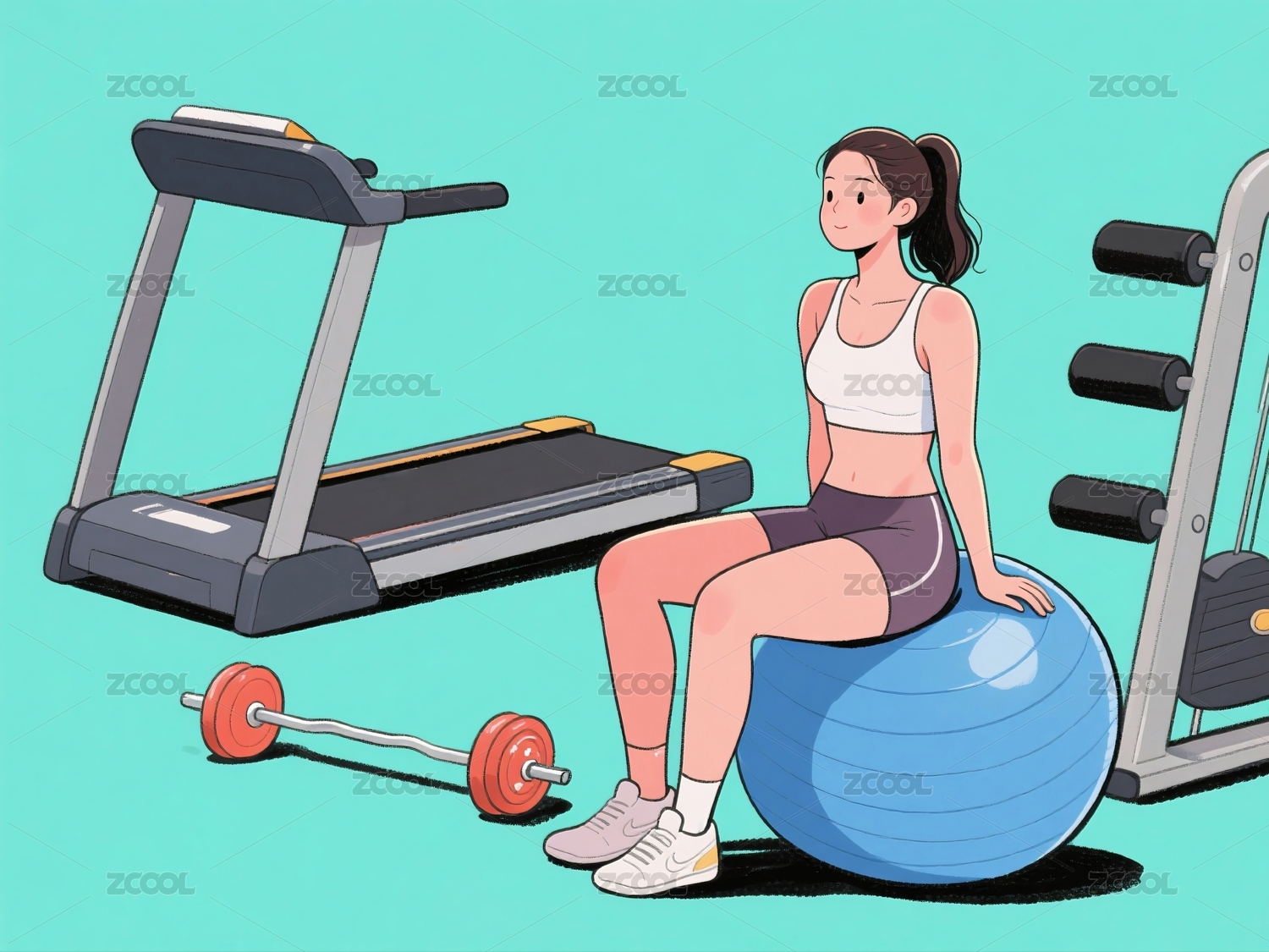 健身房运动卡通插画