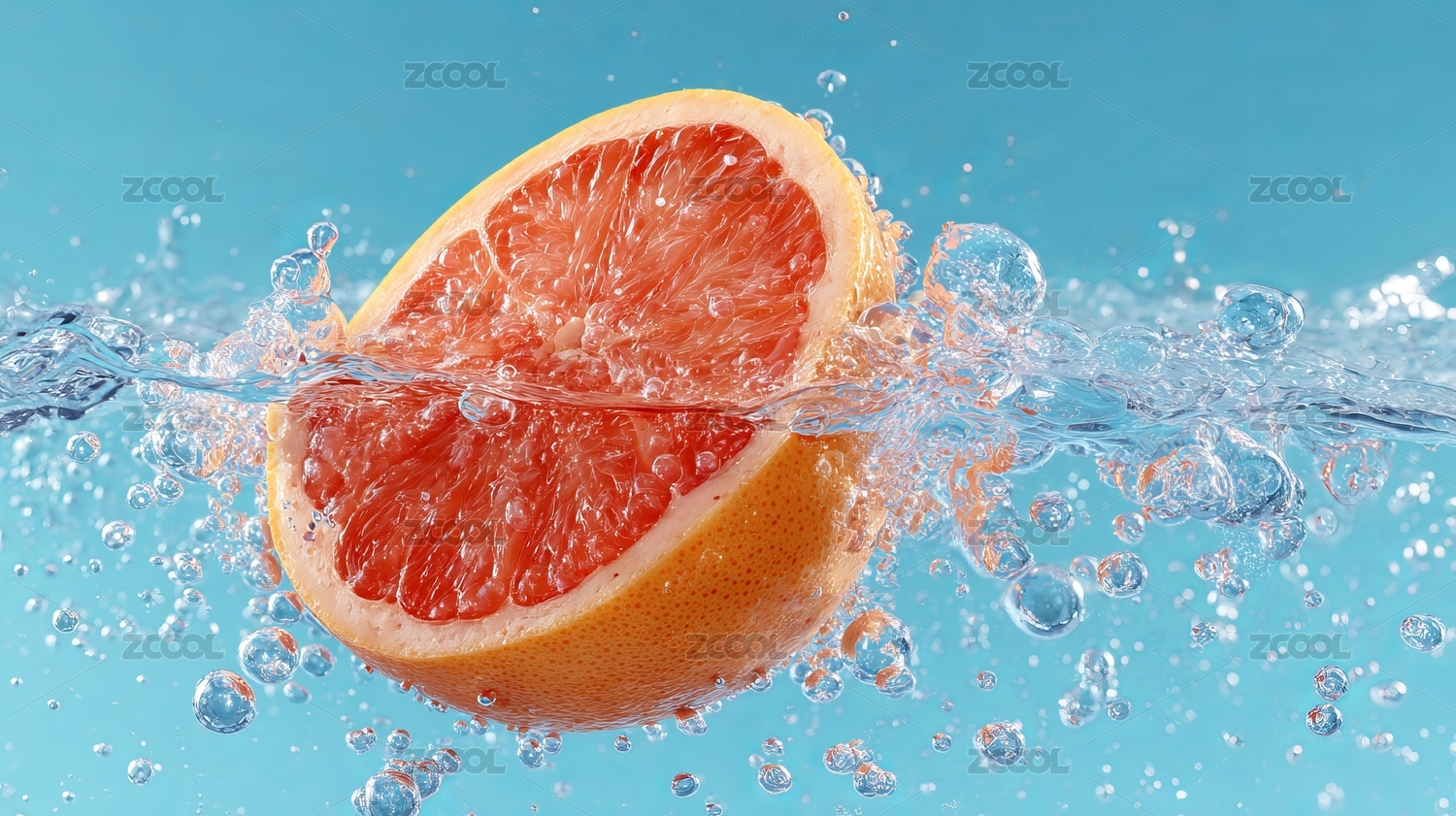 西柚入水溅气泡场景