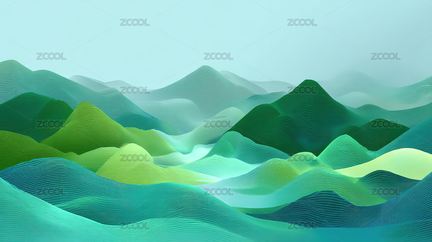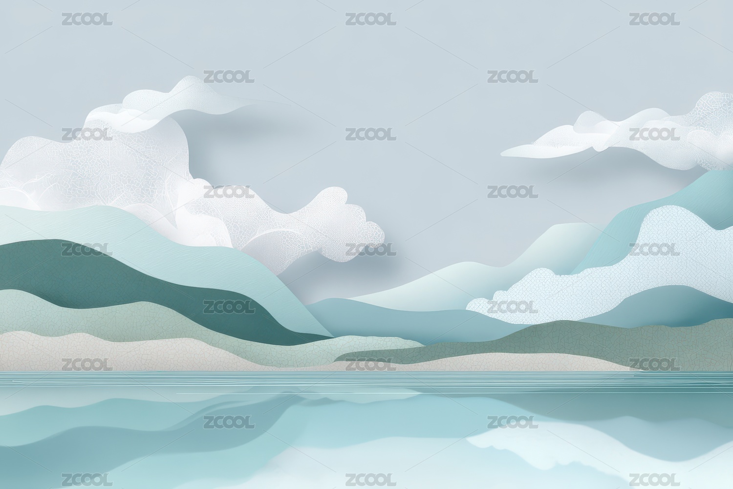 清新,山峦,白云,飞鸟,波浪,纹理,层次,淡蓝