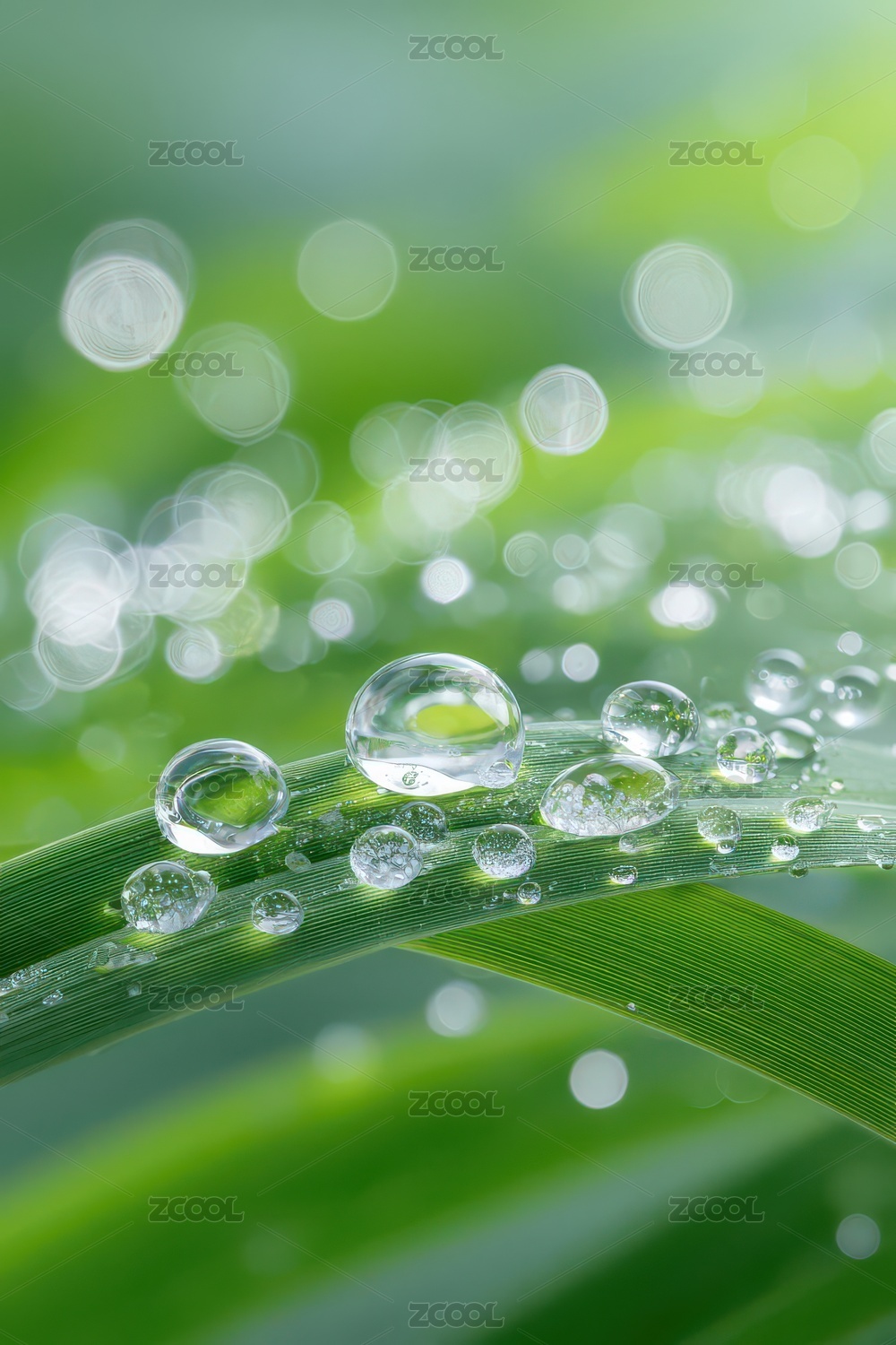 夏天治愈绿色嫩芽叶子上的露珠水珠