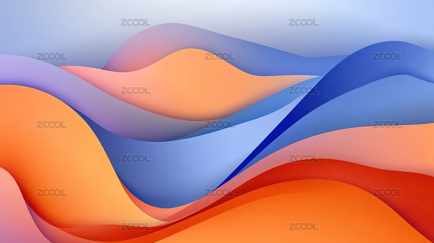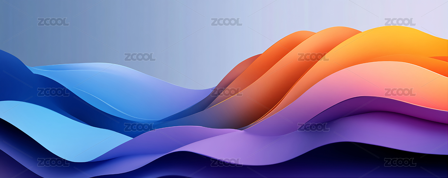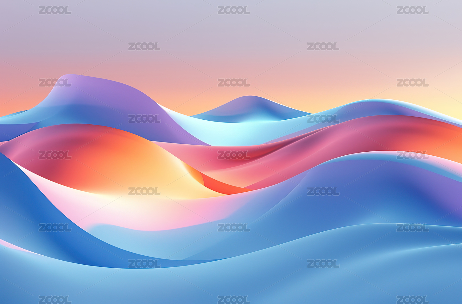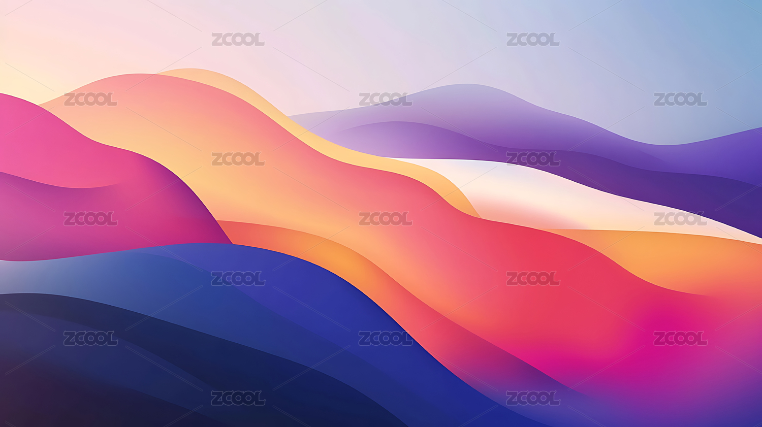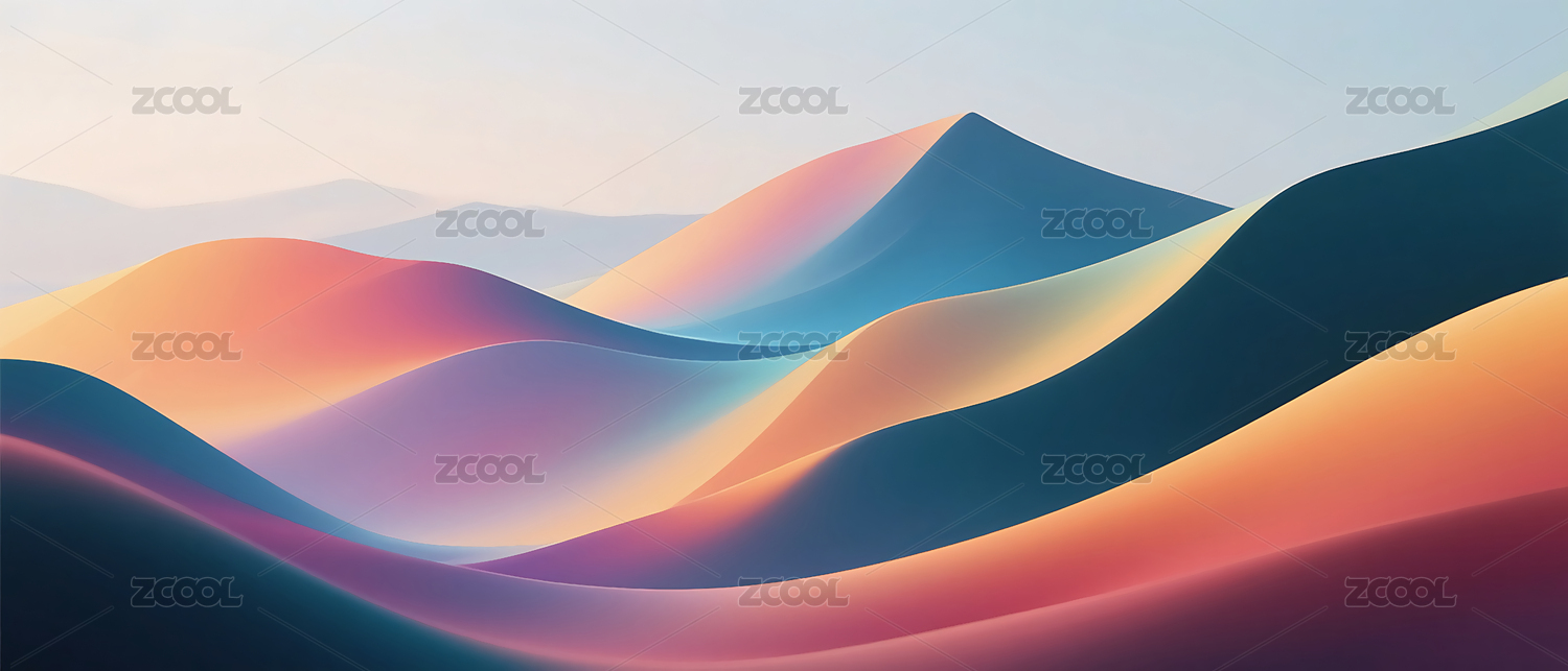 抽象渐变色彩叠加形成起伏曲线视觉冲击