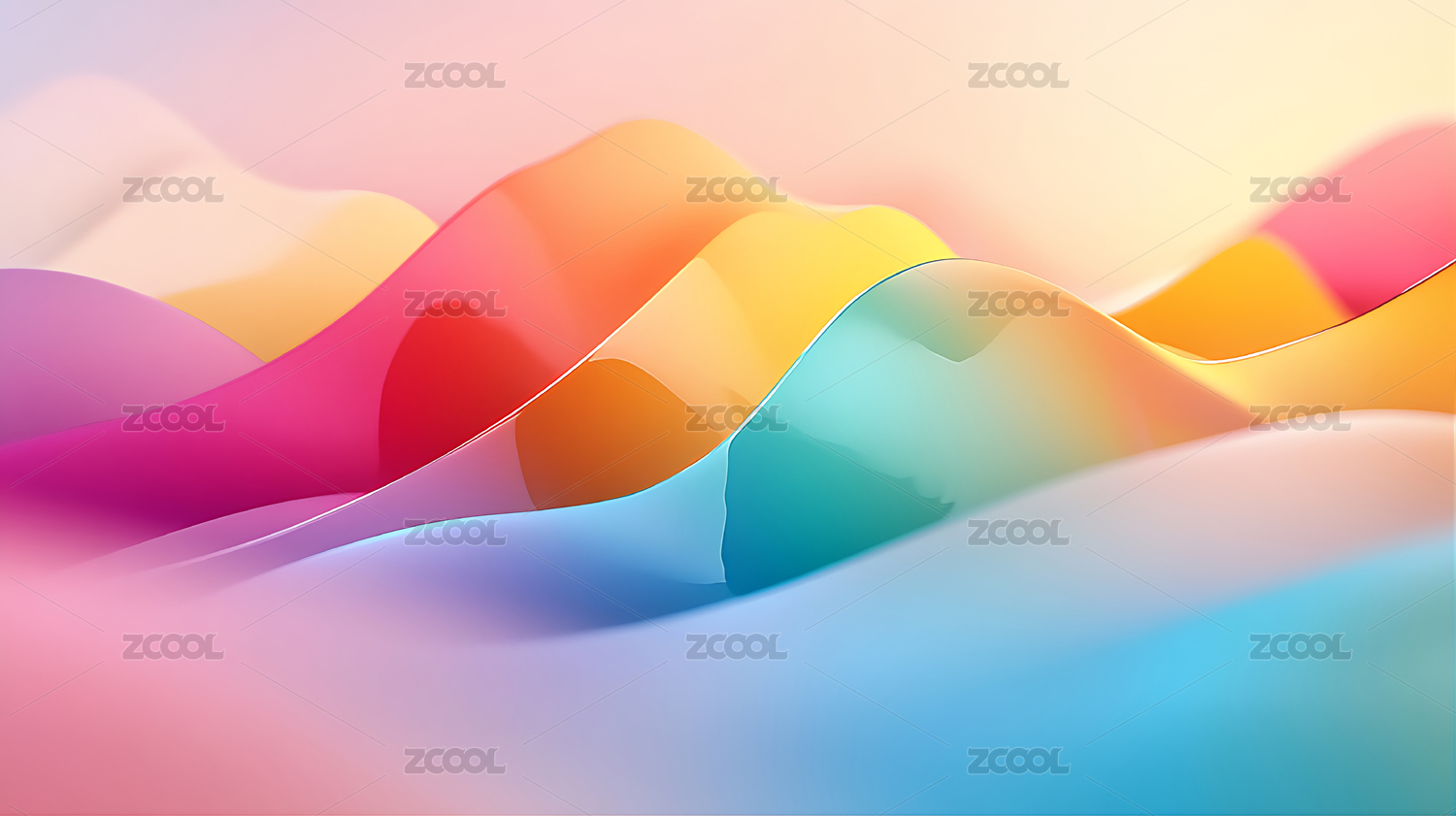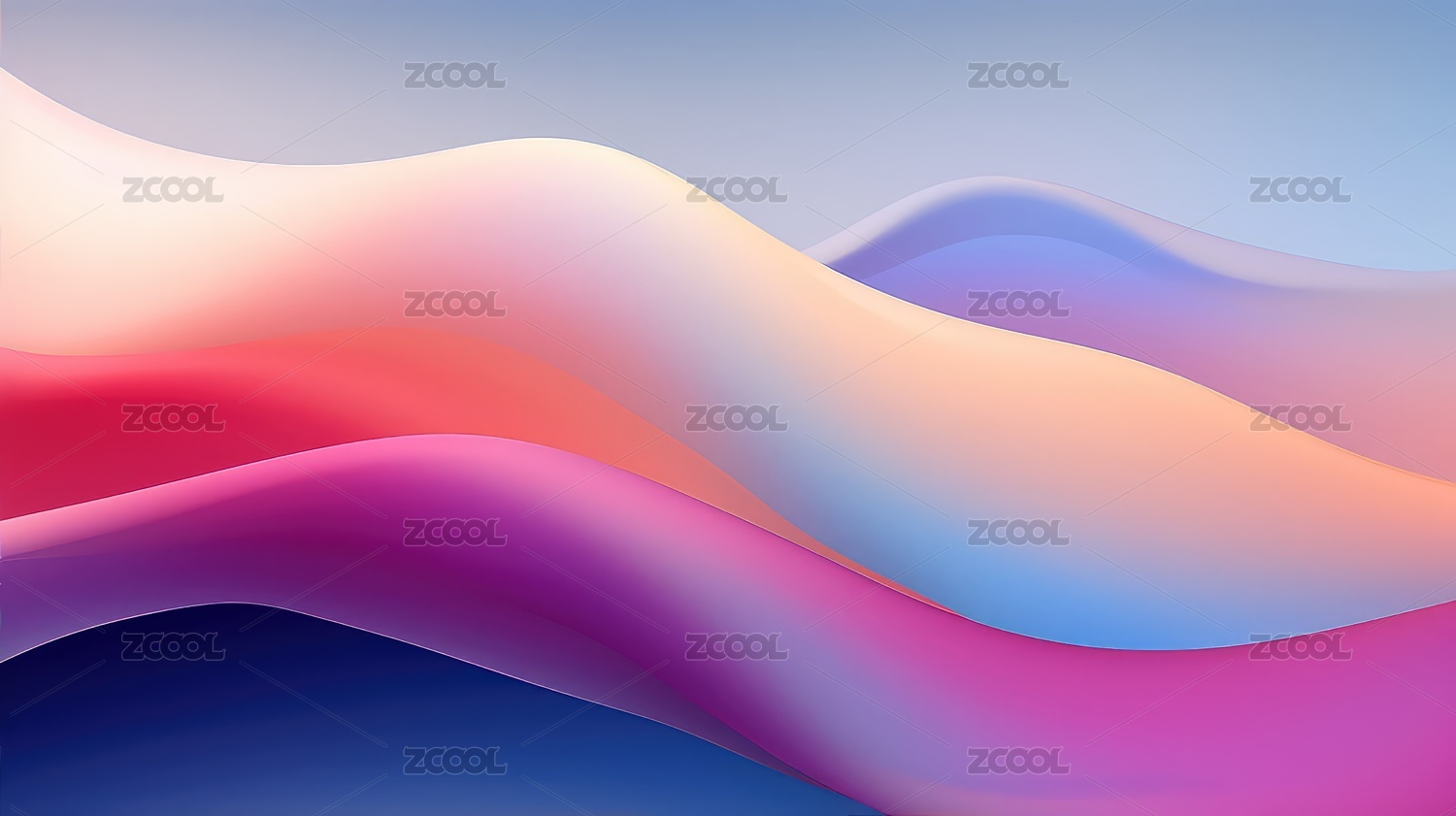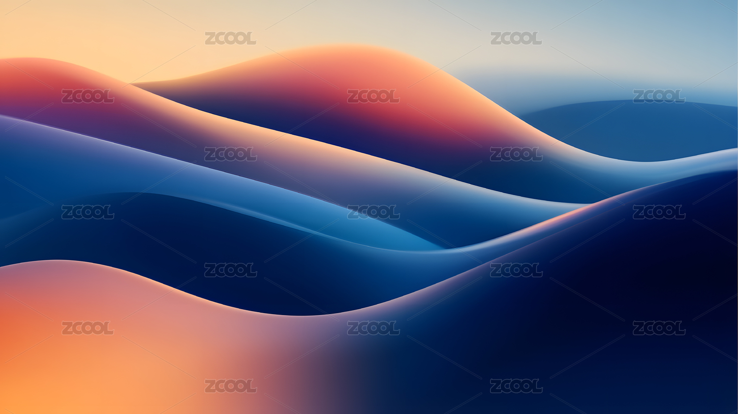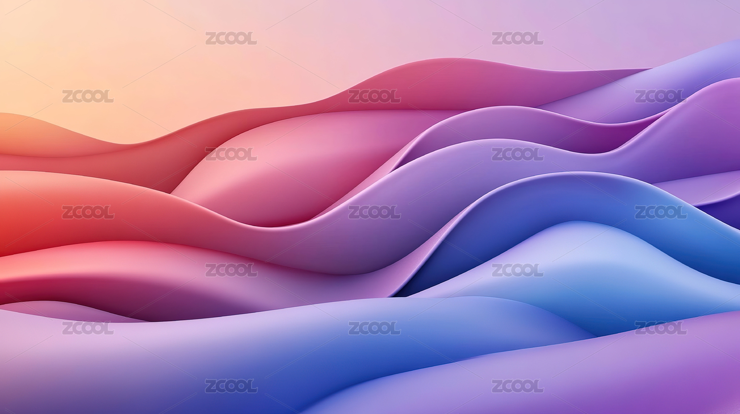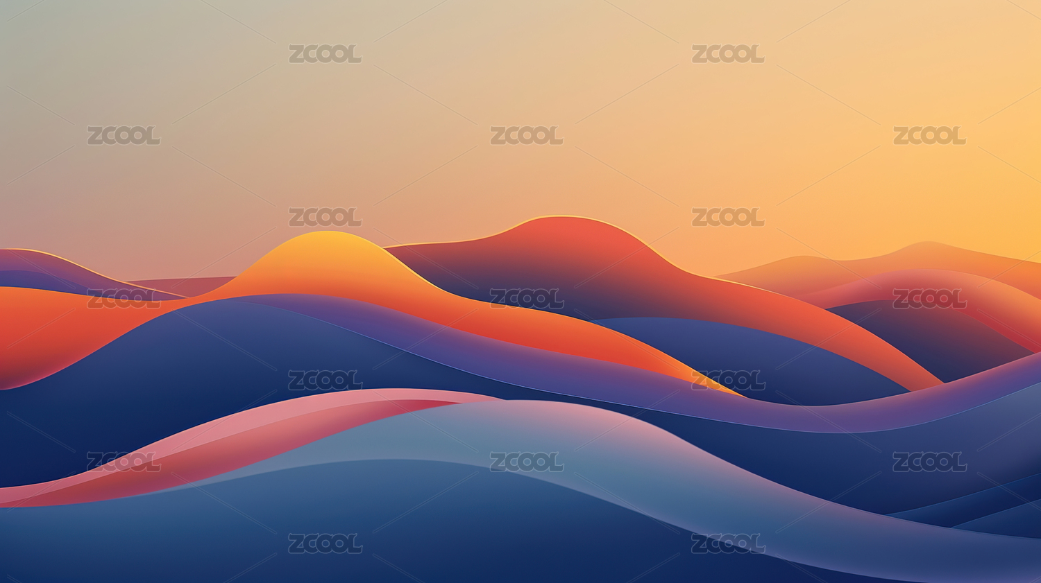 抽象渐变色彩叠加形成起伏曲线视觉冲击
