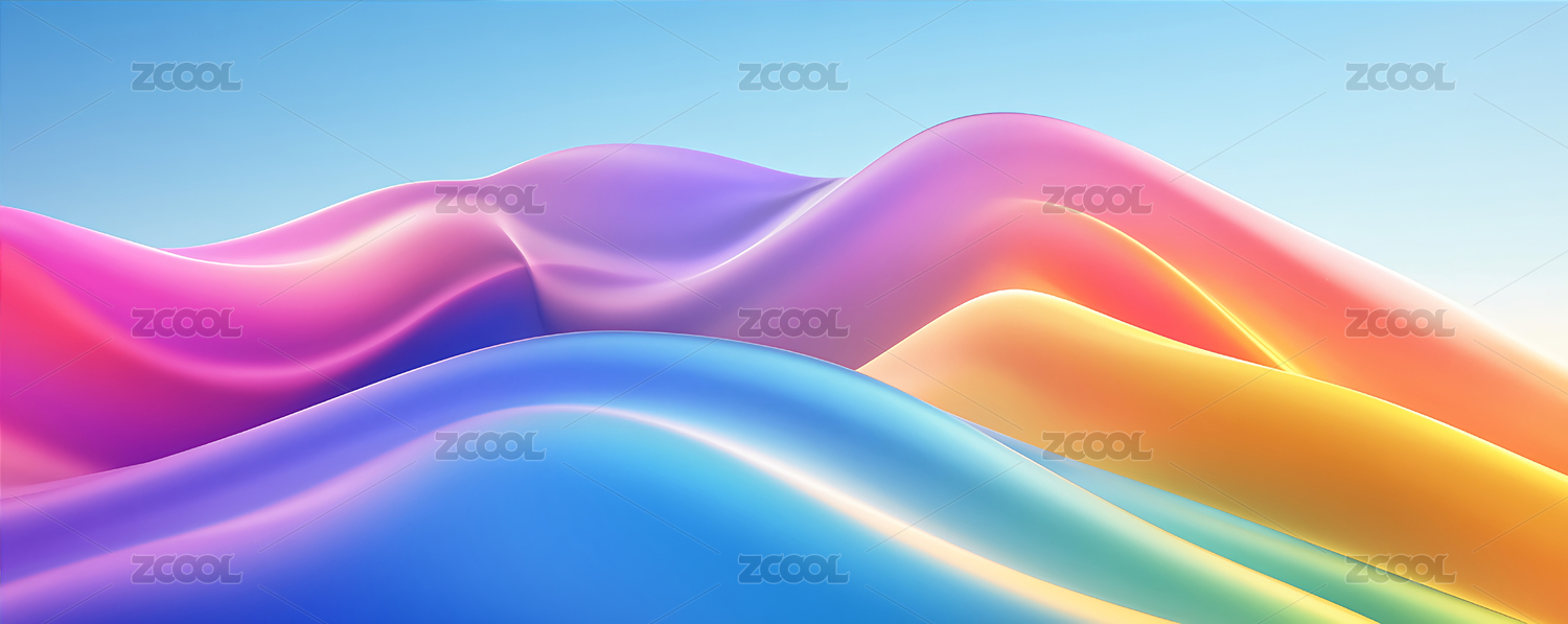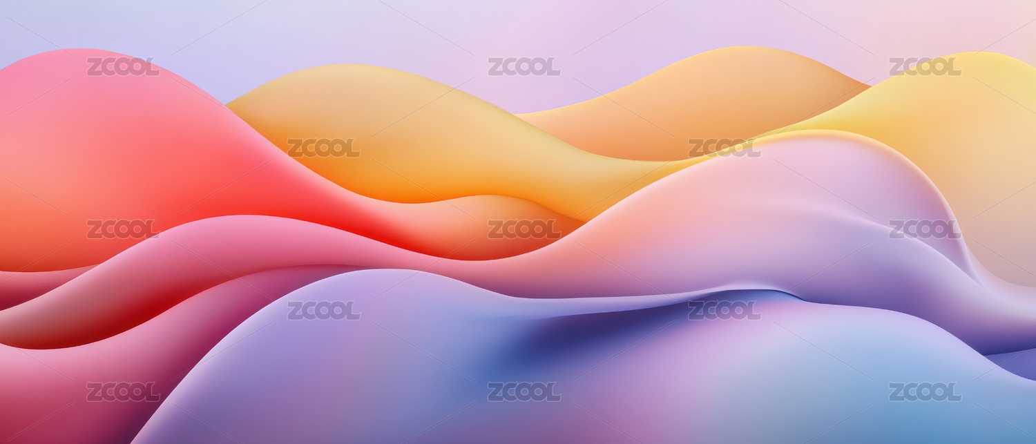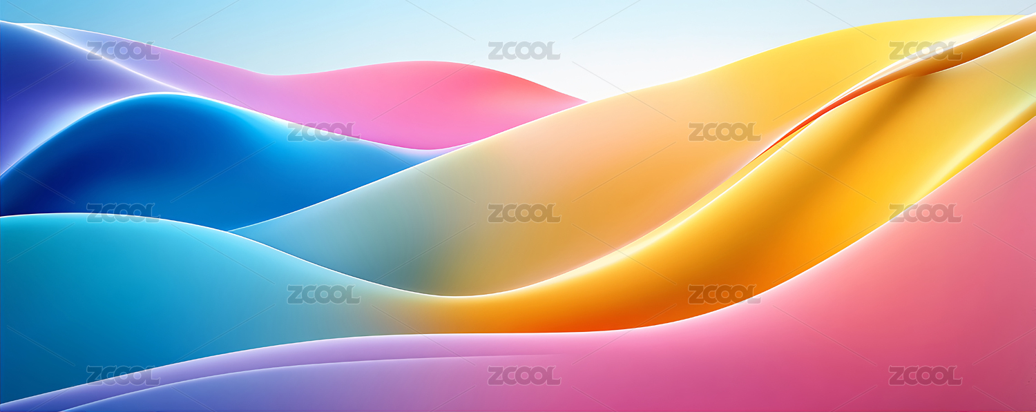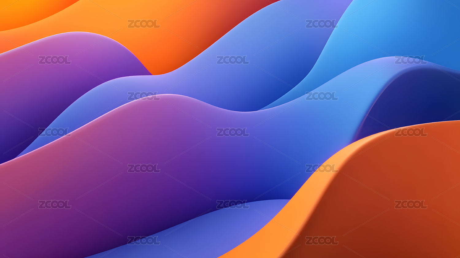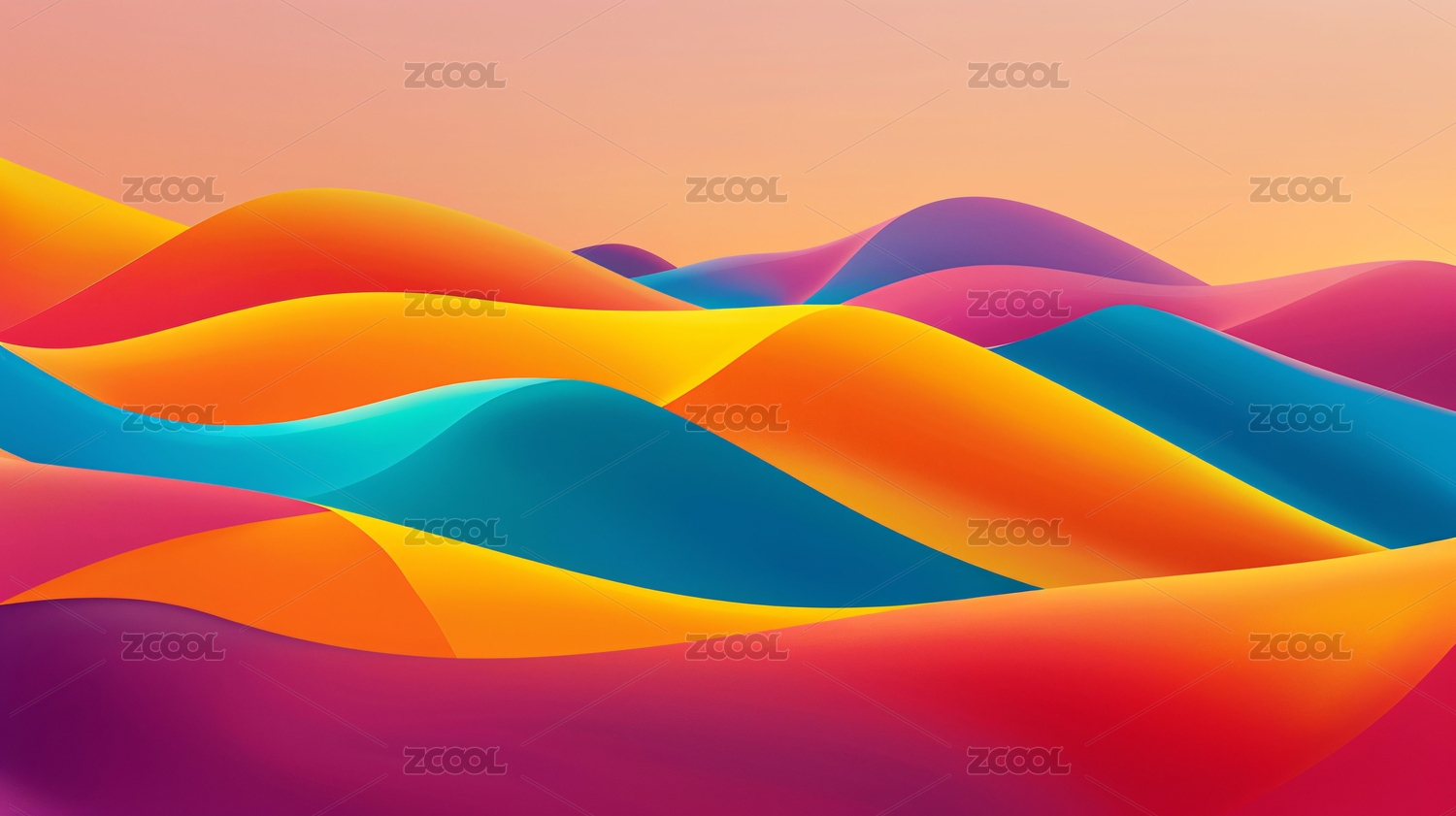 抽象渐变色彩叠加形成起伏曲线视觉冲击