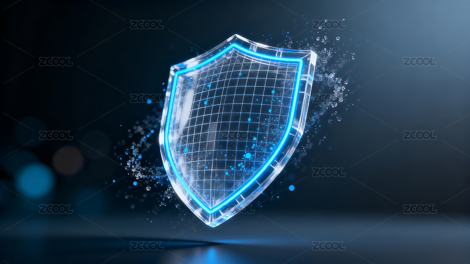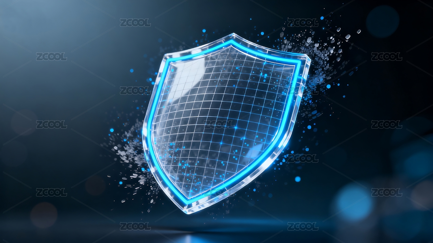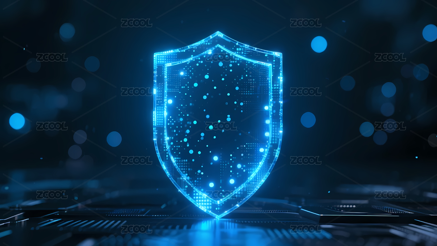 蓝色的科技盾牌,互联网金融财产安全插画保