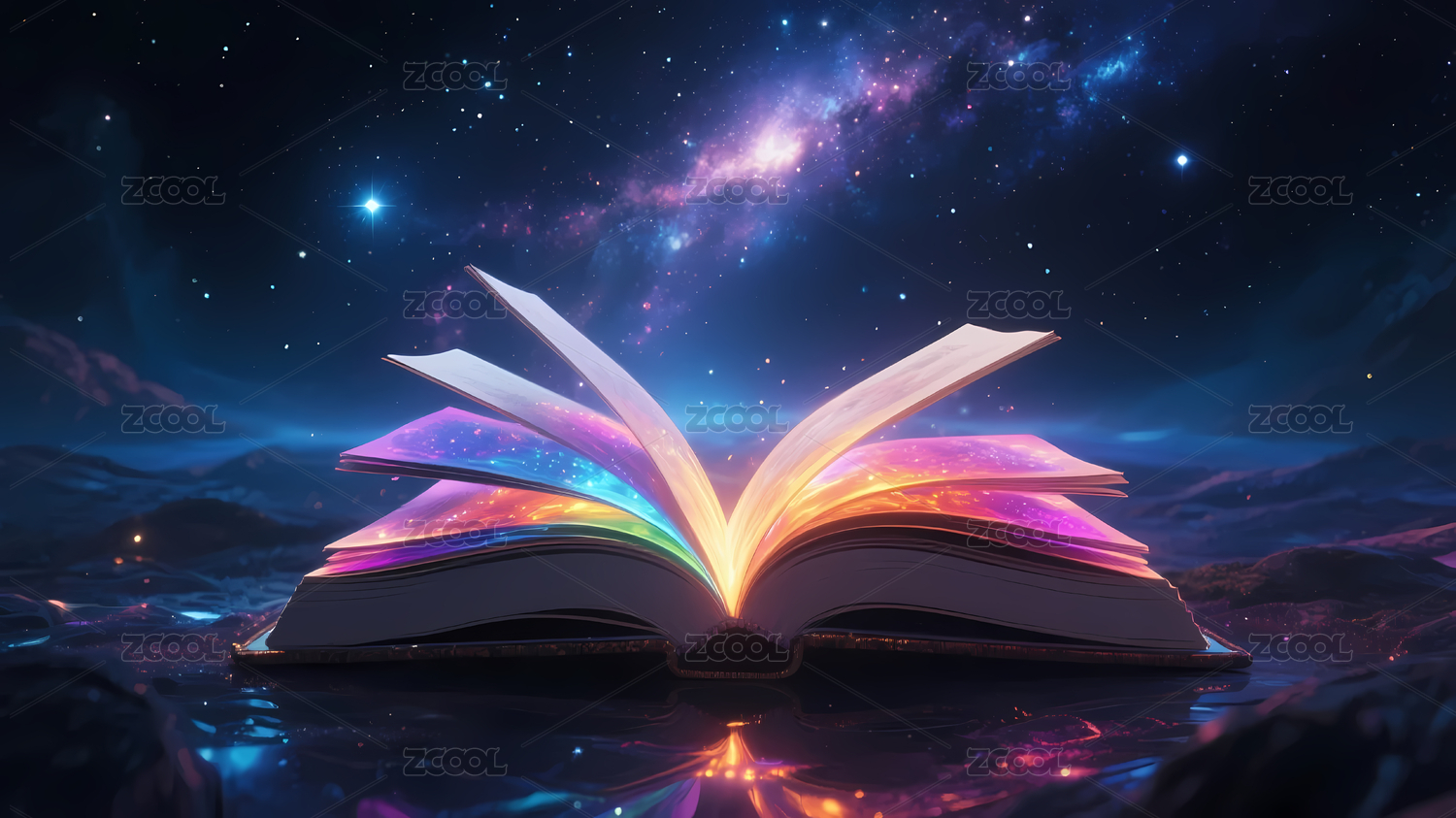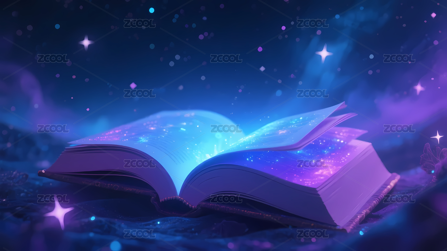紫色,蓝色,梦幻,星空,神秘,书本,彩虹,星星,书页,银河