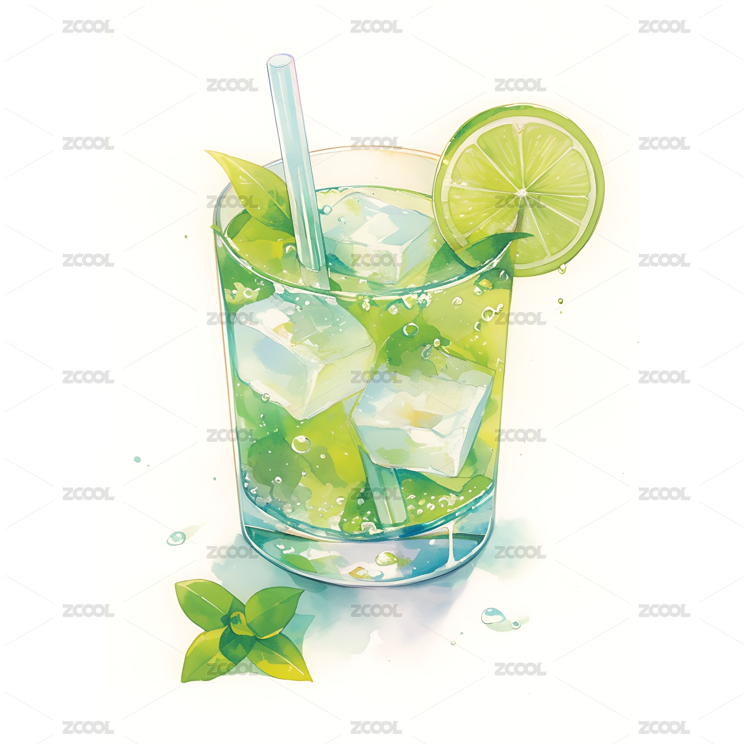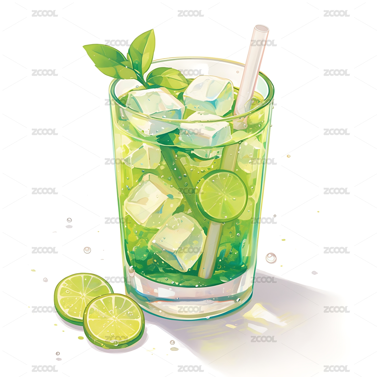 青柠薄荷冰饮插画夏日清凉饮品素材