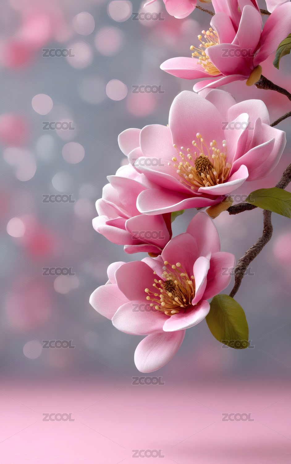 粉嫩樱花点缀木质桌面