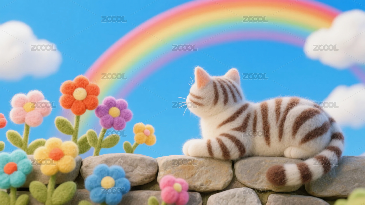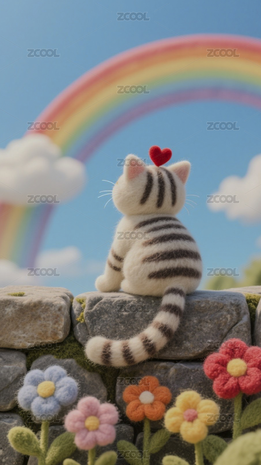 猫,彩虹,爱心,鲜花,田园,卡通,可爱,萌宠,宠物,治愈