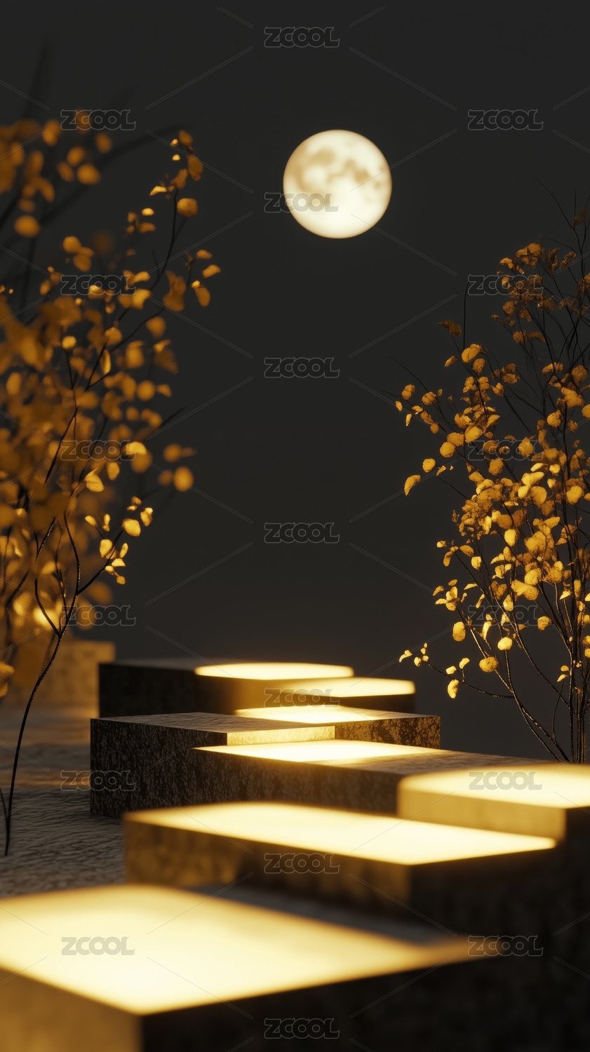 中秋花瓶水中倒影山水月亮营销海报背景图