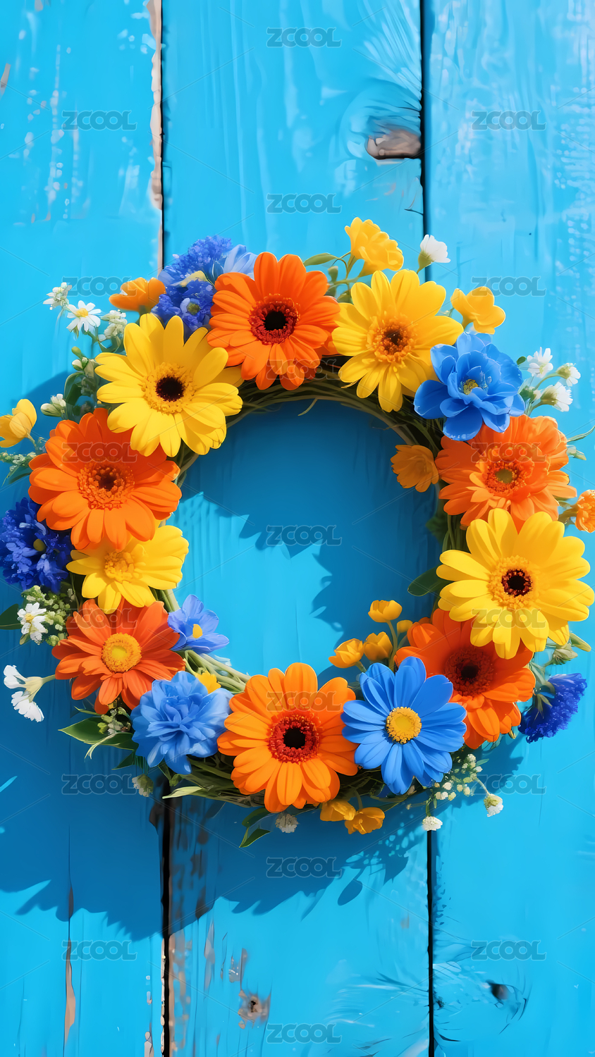 蓝色,自然,色彩,活力,背景,橙色,黄色,花环,装饰,木质