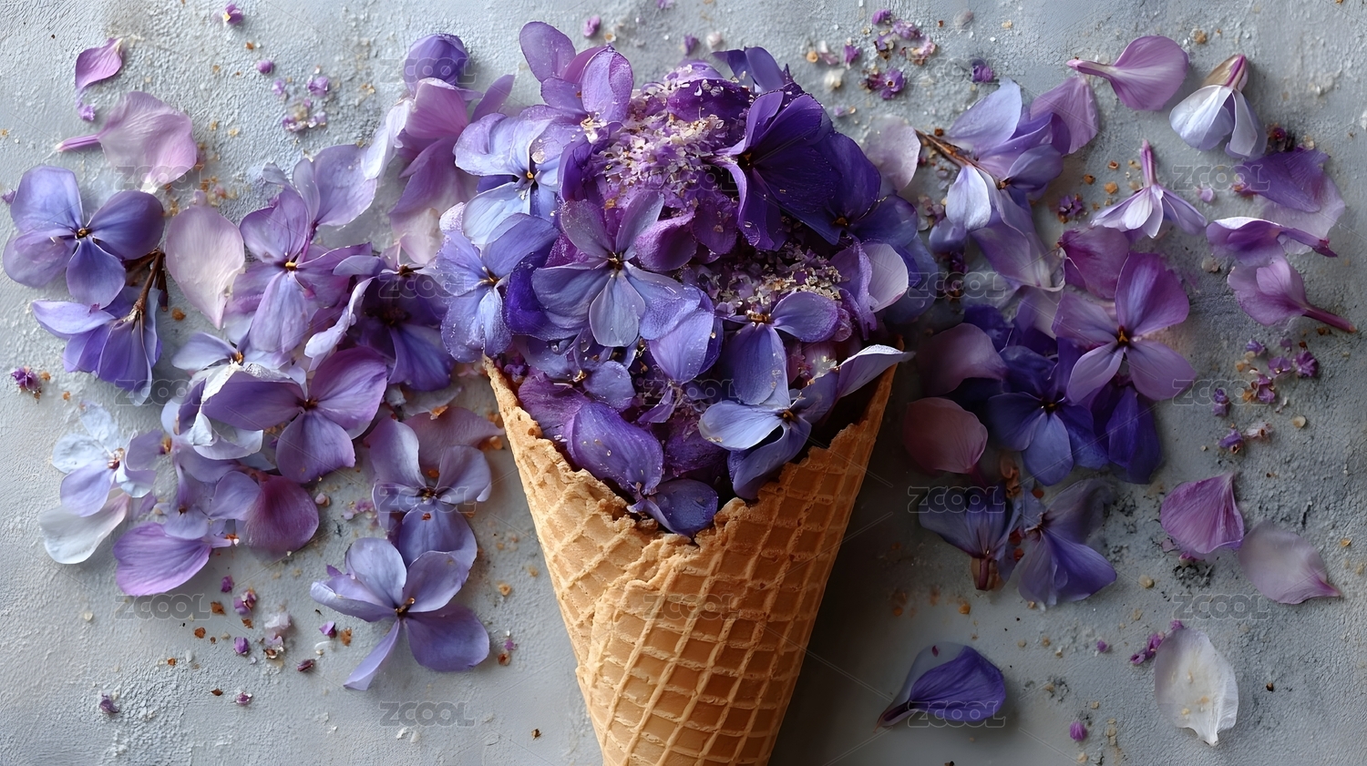 紫色,饼干,花朵,花瓣,花束,冰淇淋,甜筒,花团,花蕊,花海