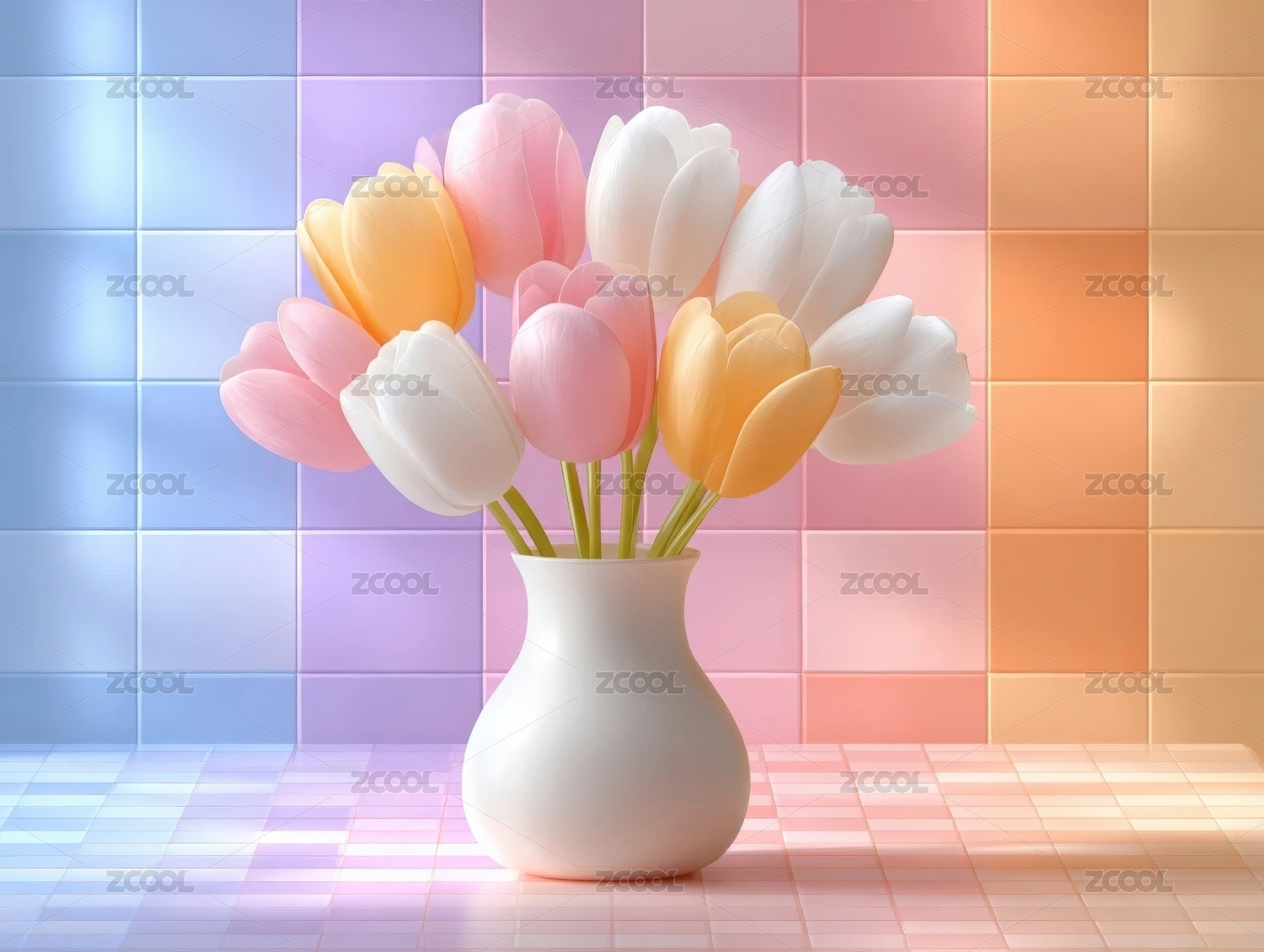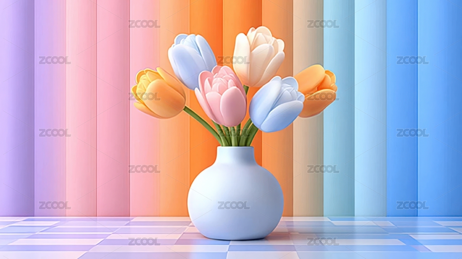 3D插在花瓶里的郁金香花