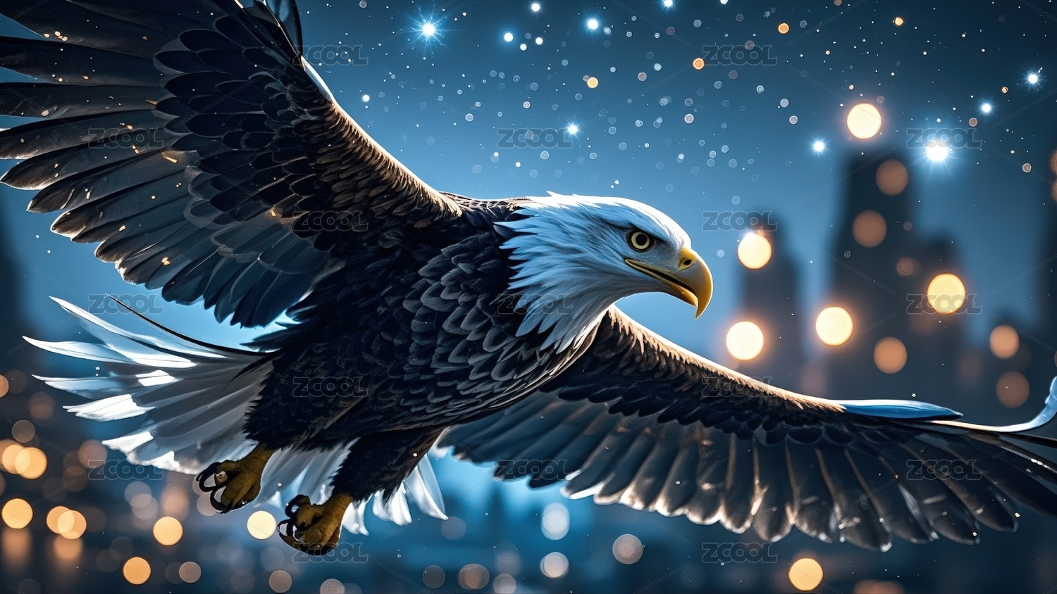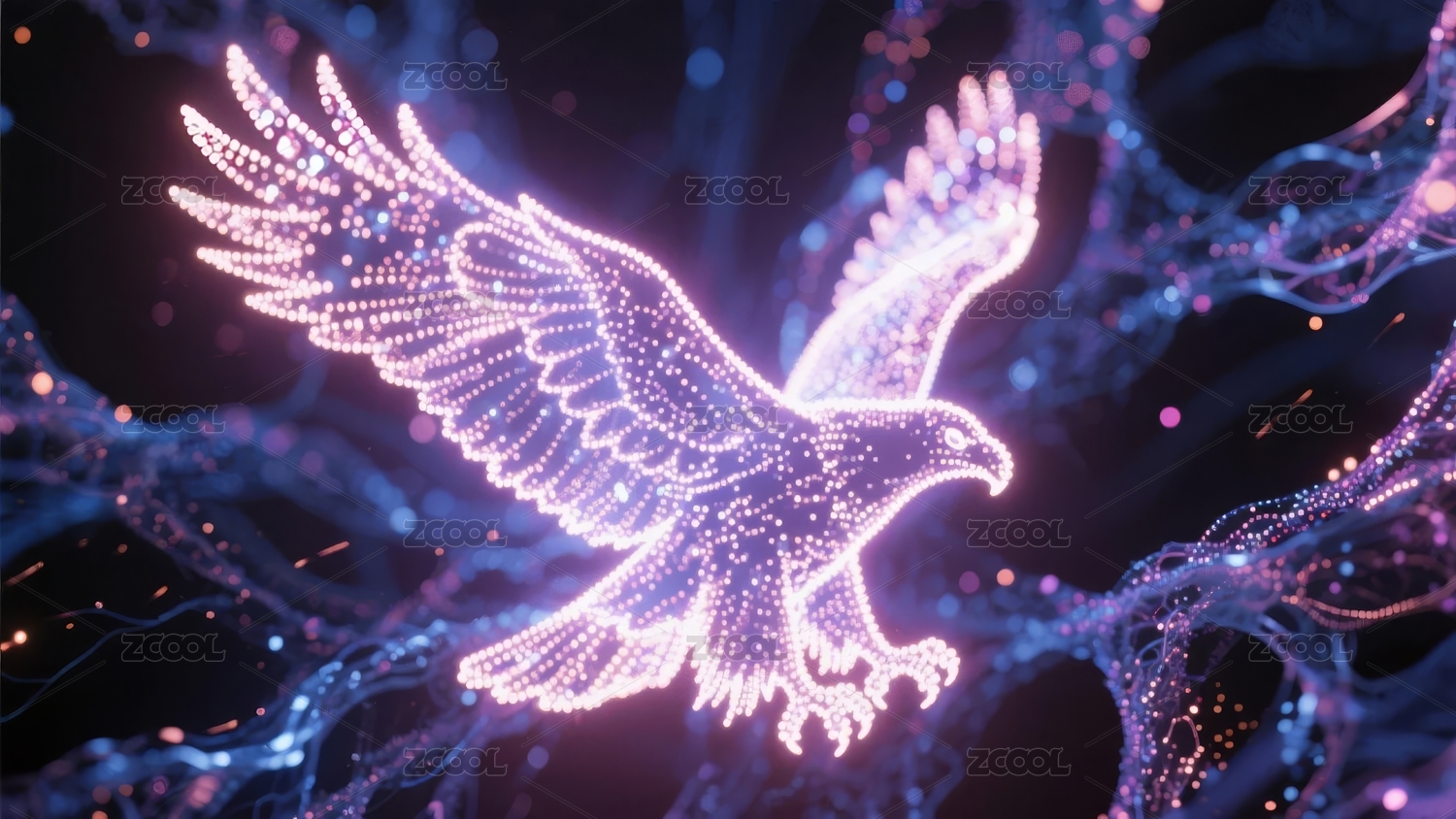 光辉鹰影:霓虹羽翼的梦幻飞翔