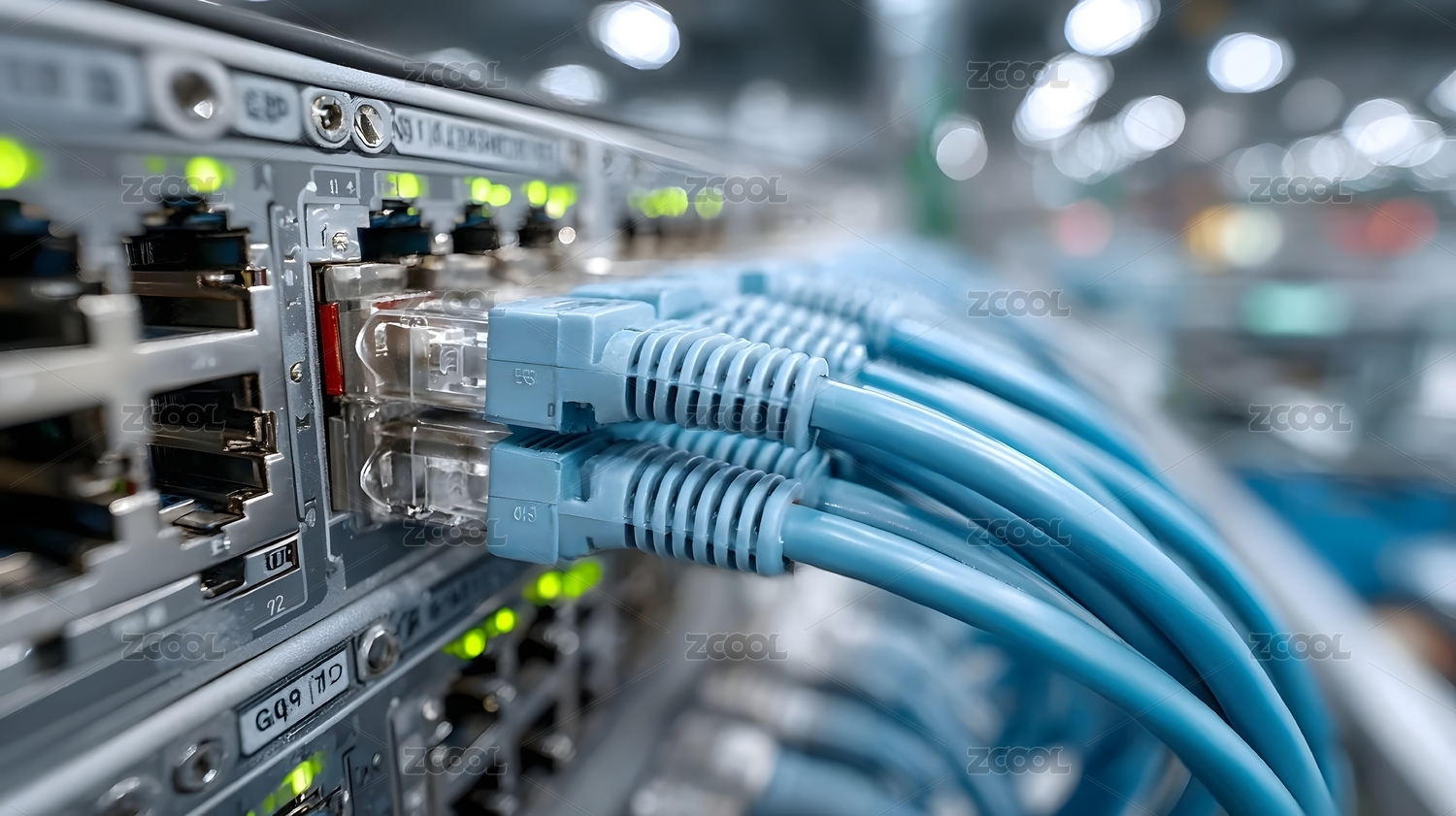 网络设备连接交换机特写