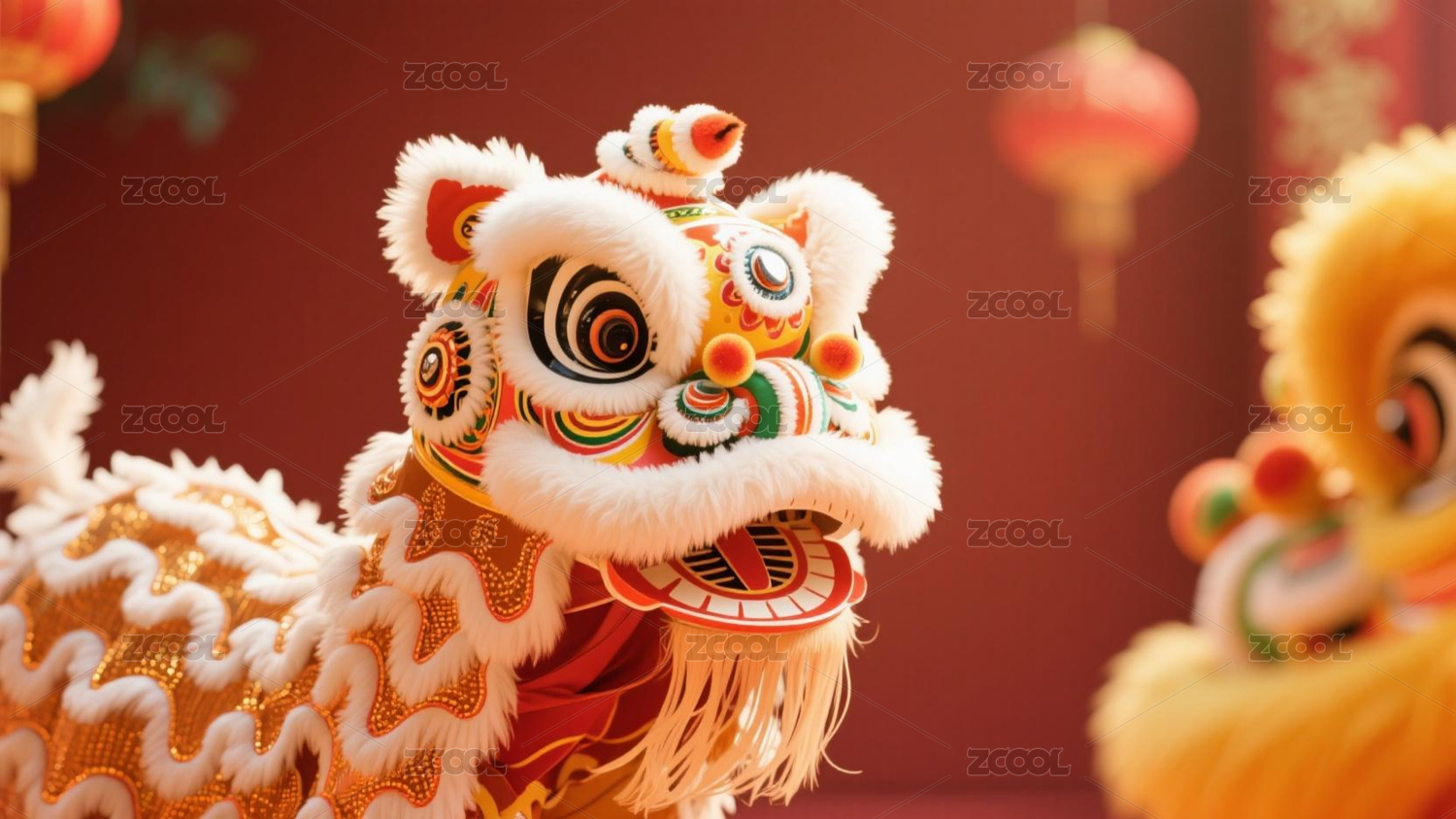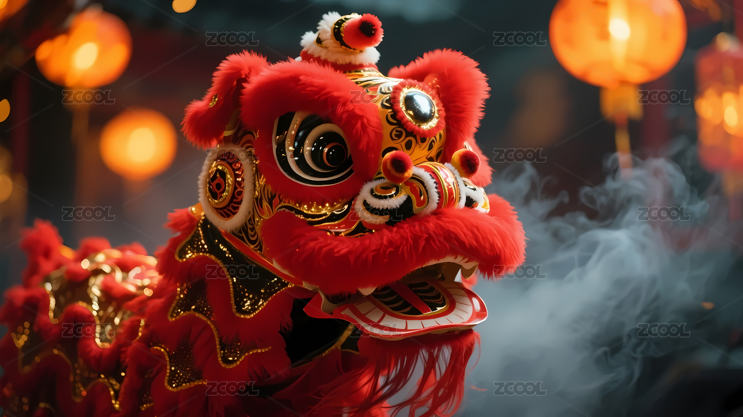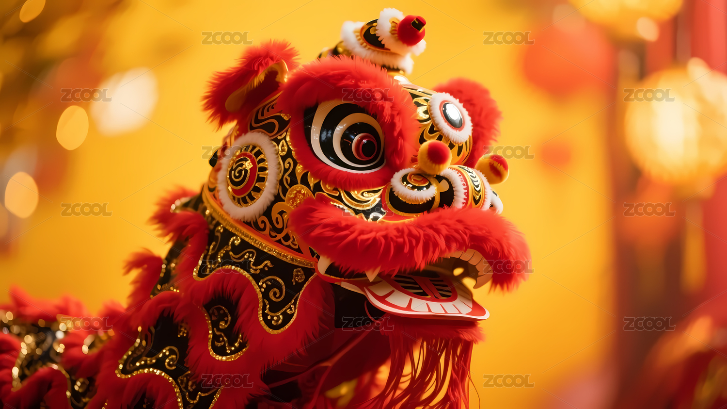 神秘,白色,金色,色彩,舞狮,红色,灯光,喜庆,装饰,头部