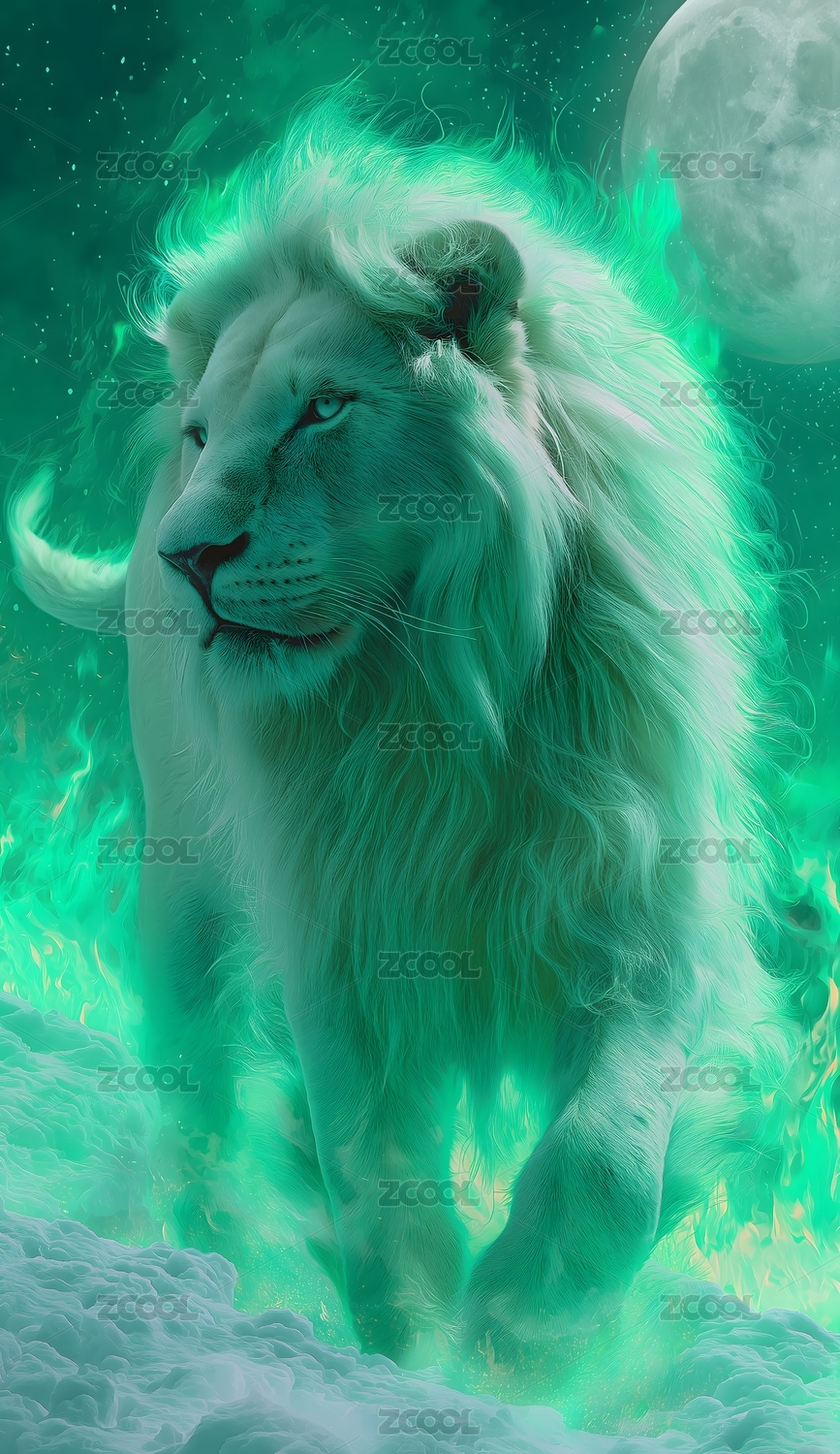 奇幻绿晕白狮