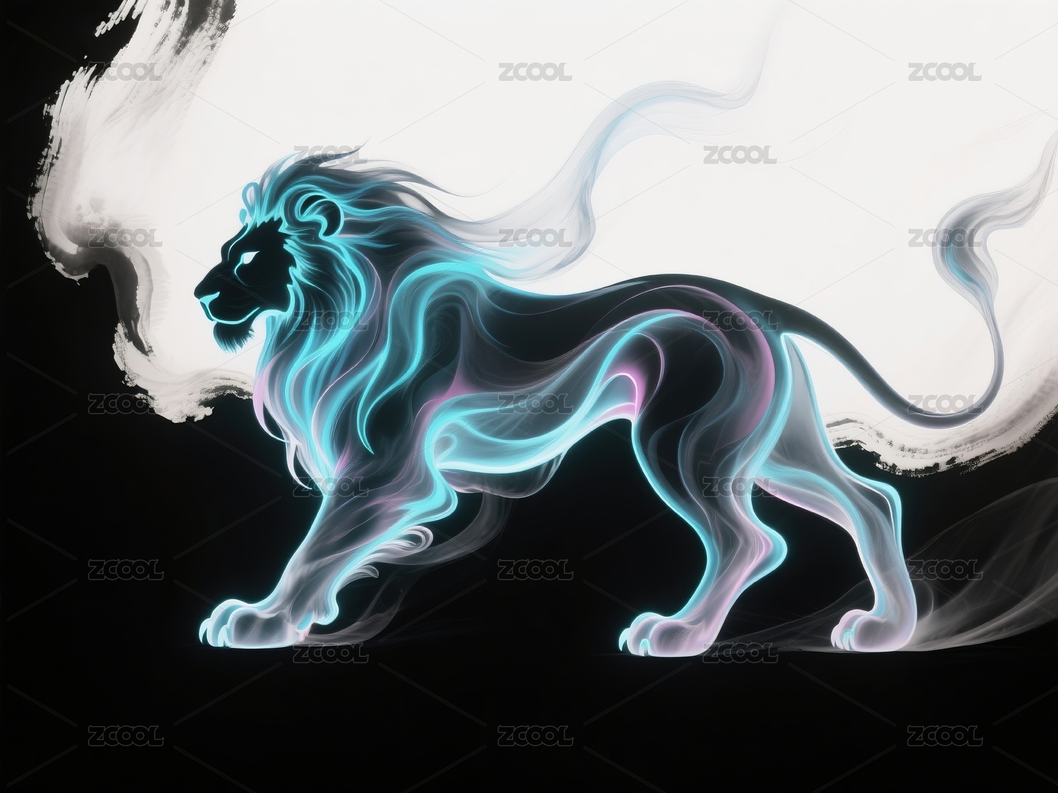 霓虹风格狮子艺术图