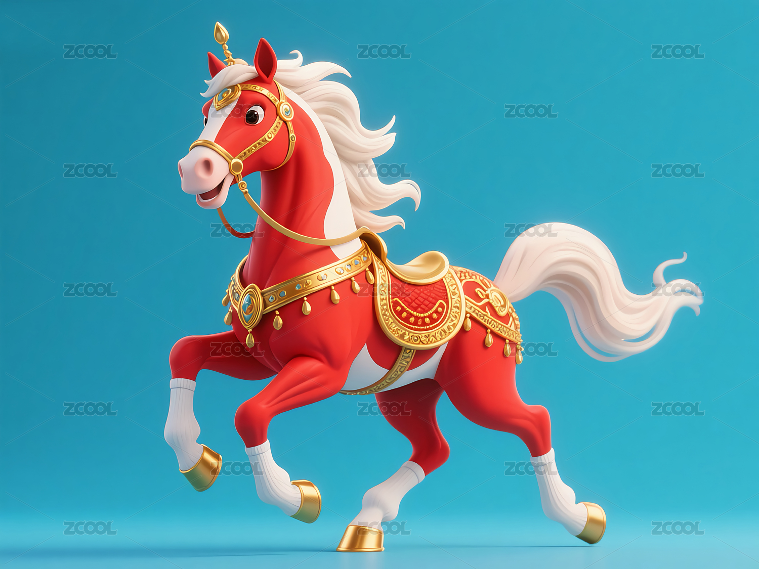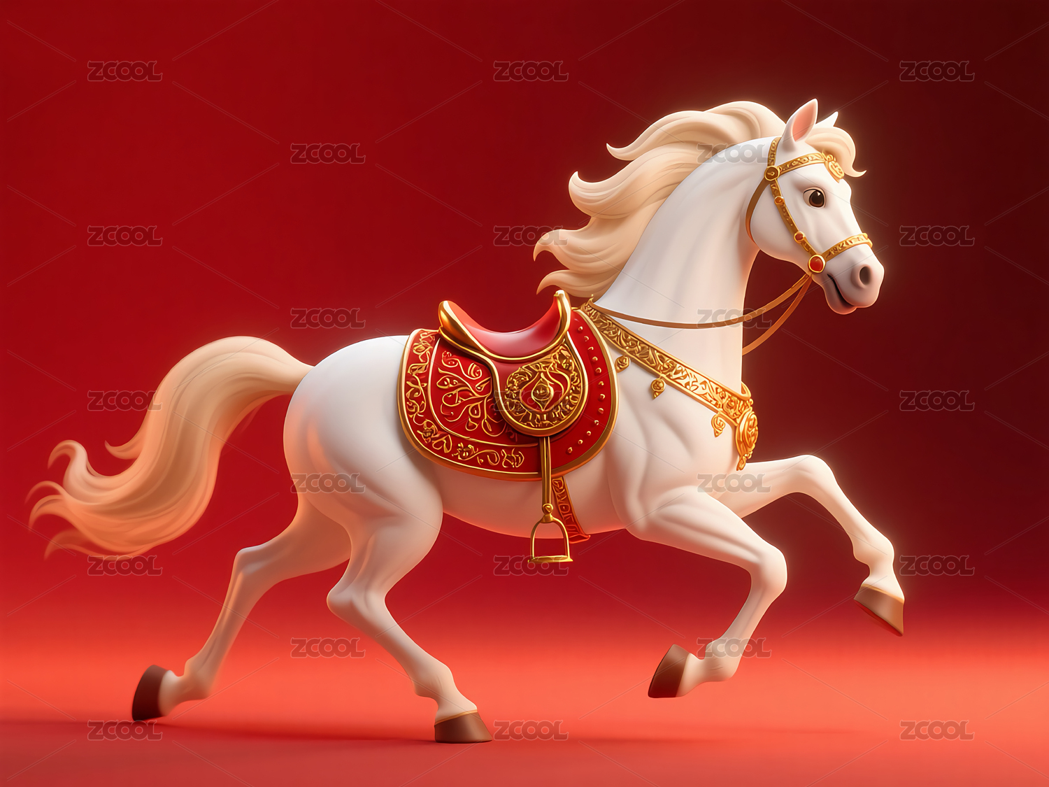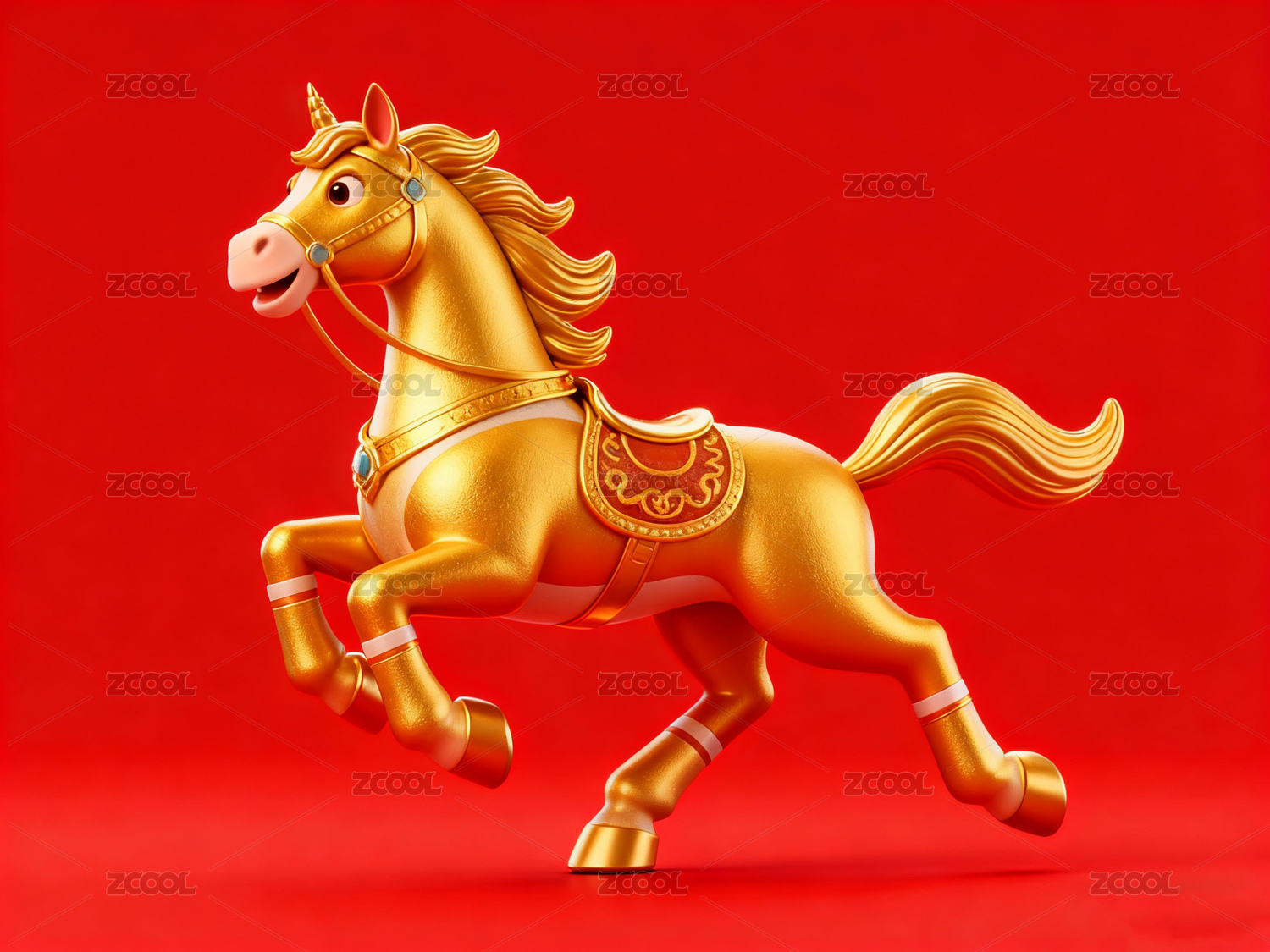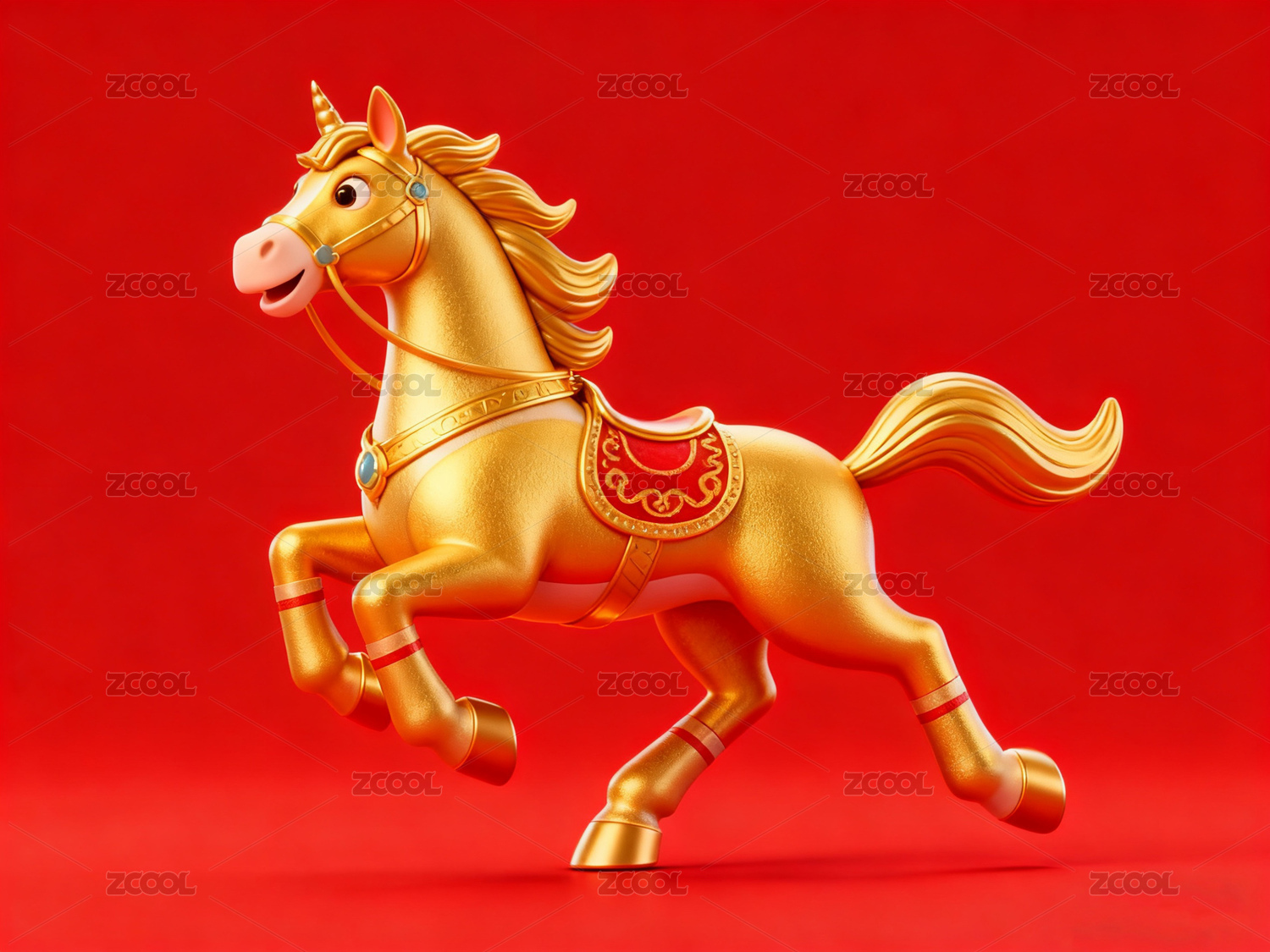驮着金元宝的生肖马3d插画