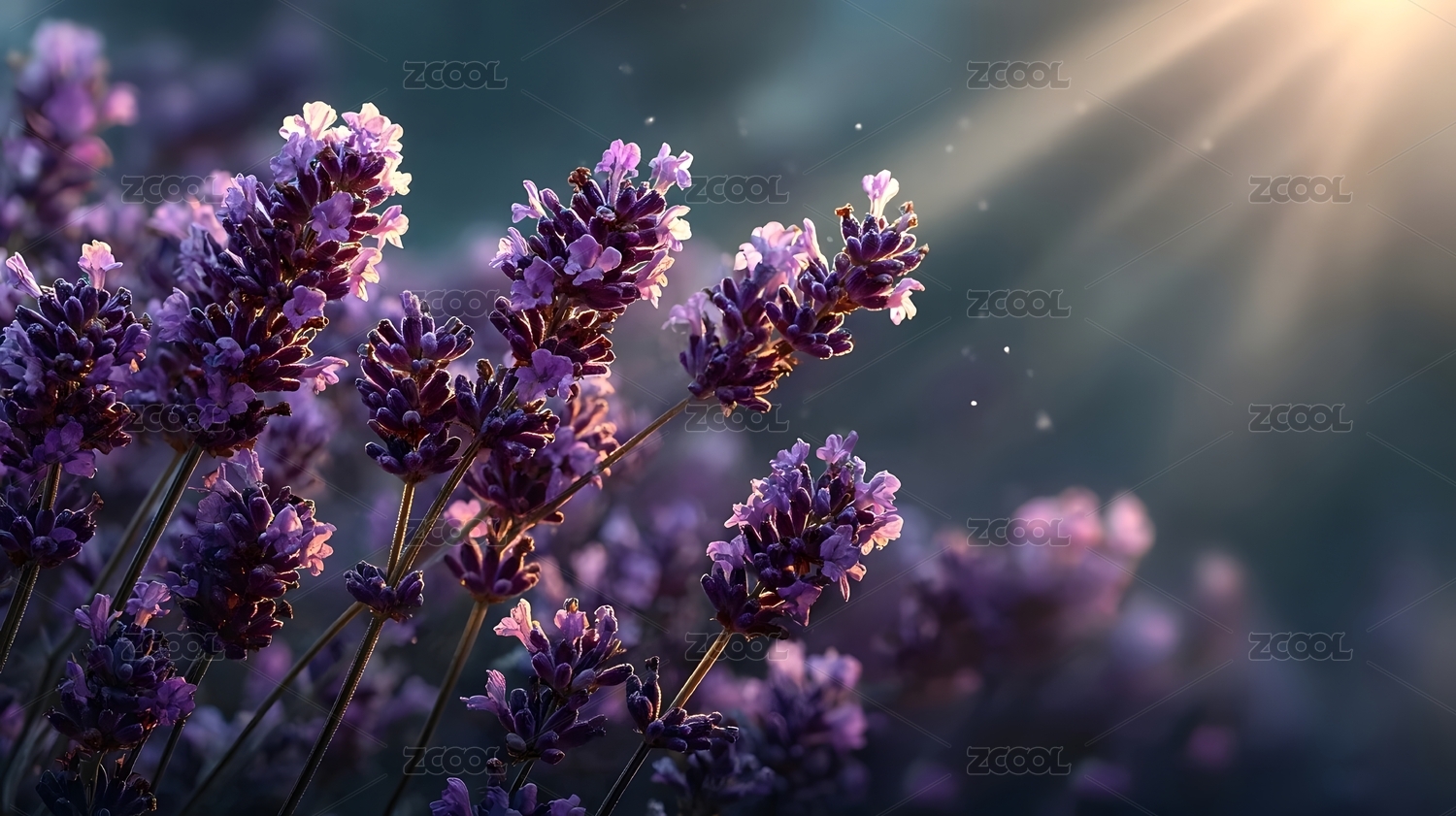 紫色薰衣草绽放于梦幻背景