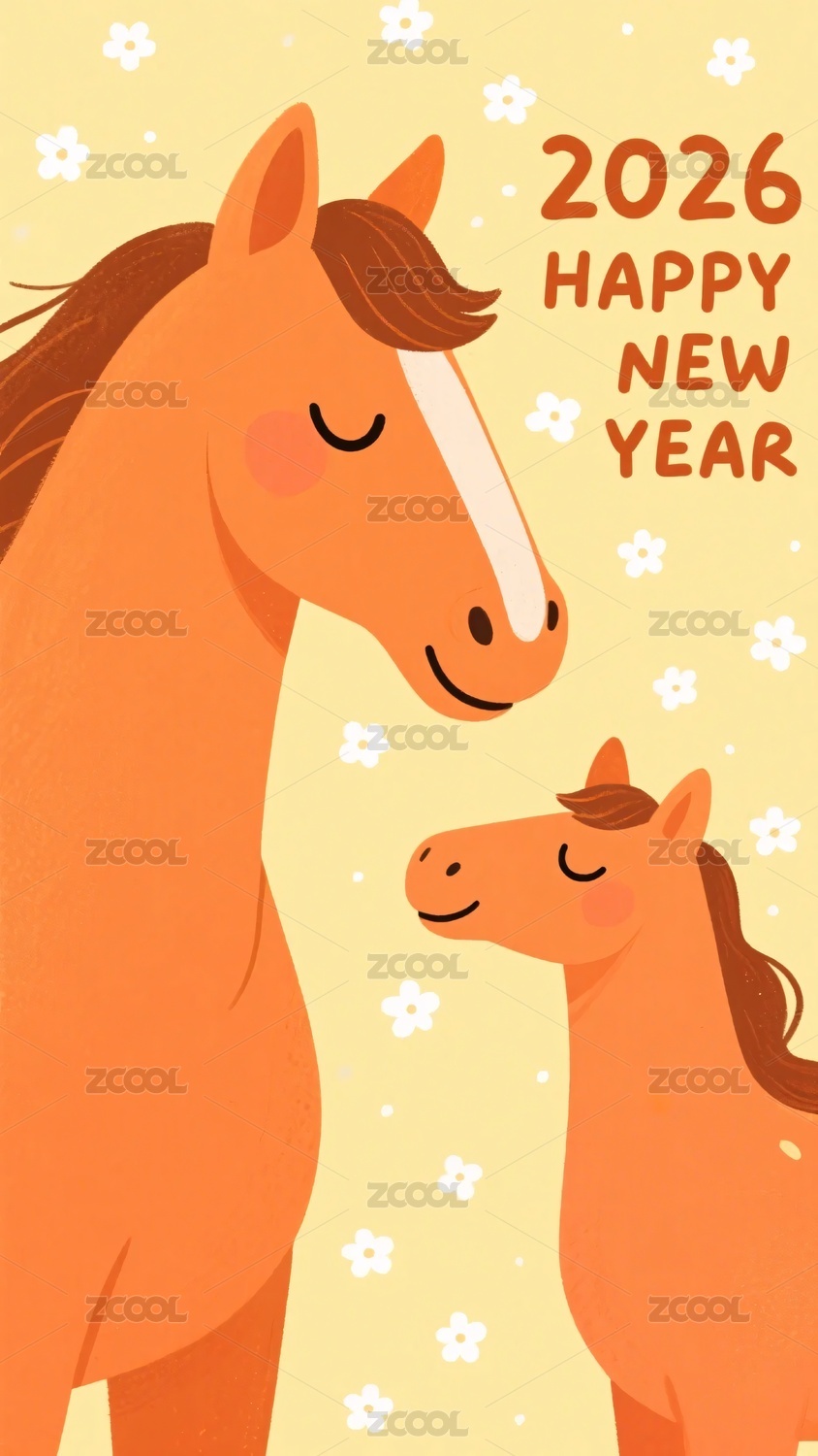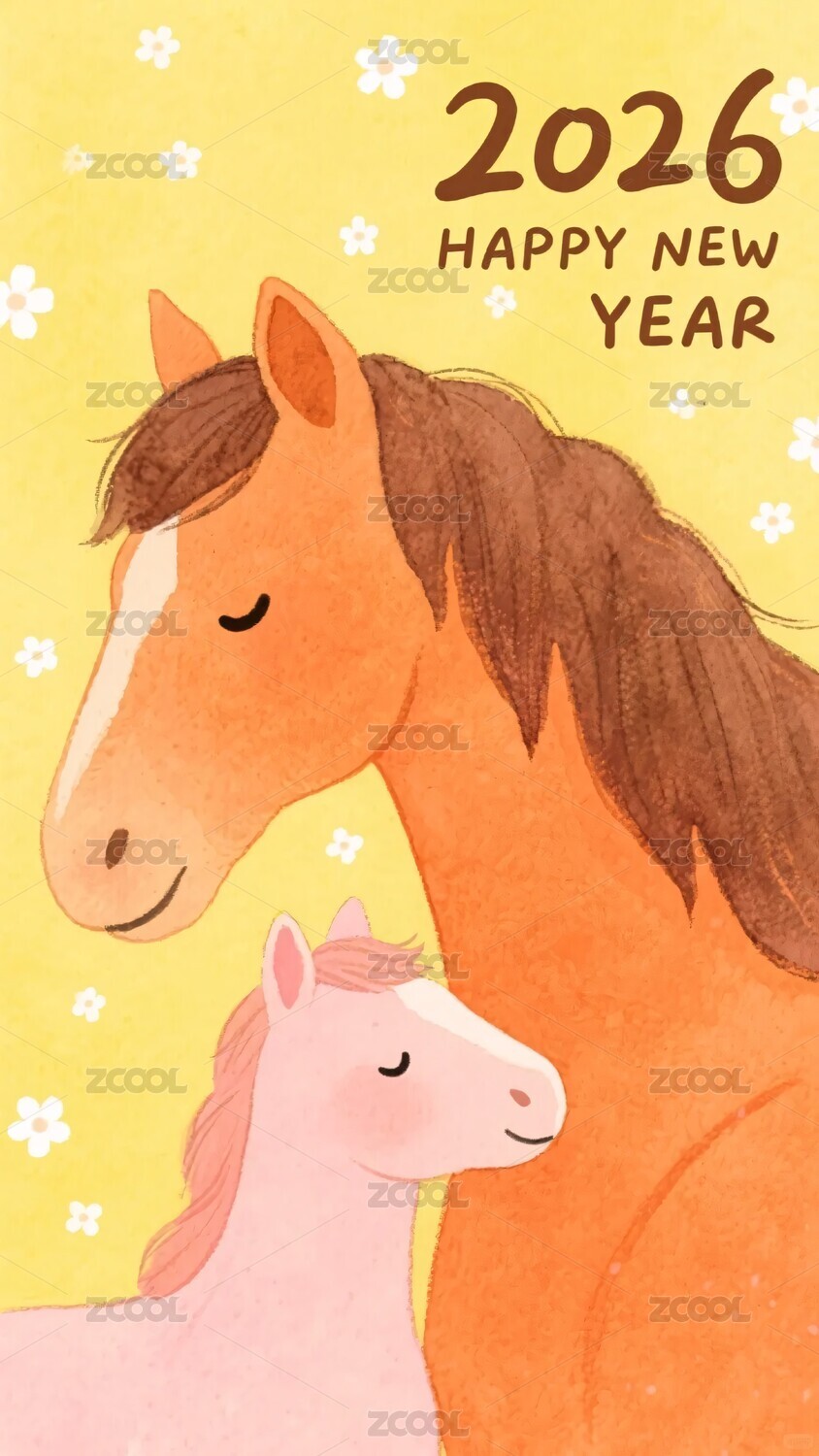 云朵,新年,插画,动物,卡通,节日,祝福,花朵,黄色背景