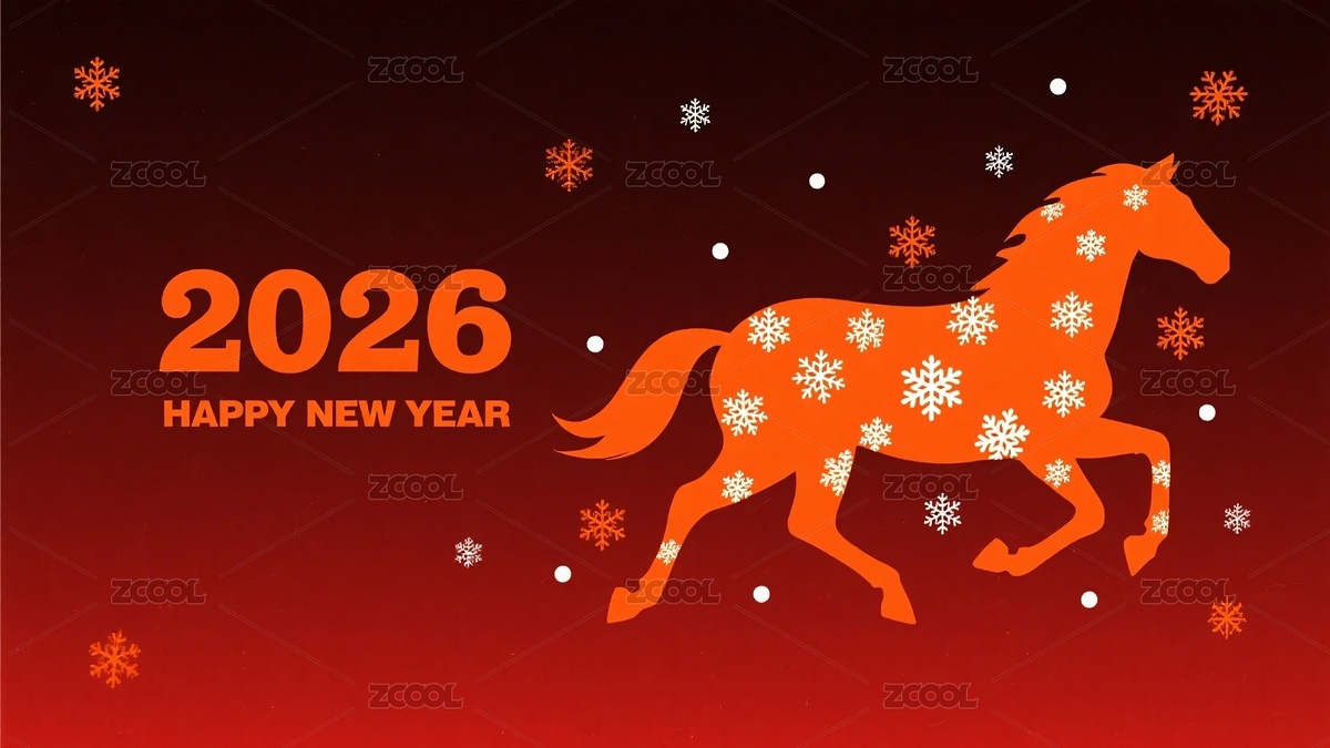 新年,雪花,插画,新年祝福,红色背景,橙色,动物,节日,庆祝,图案