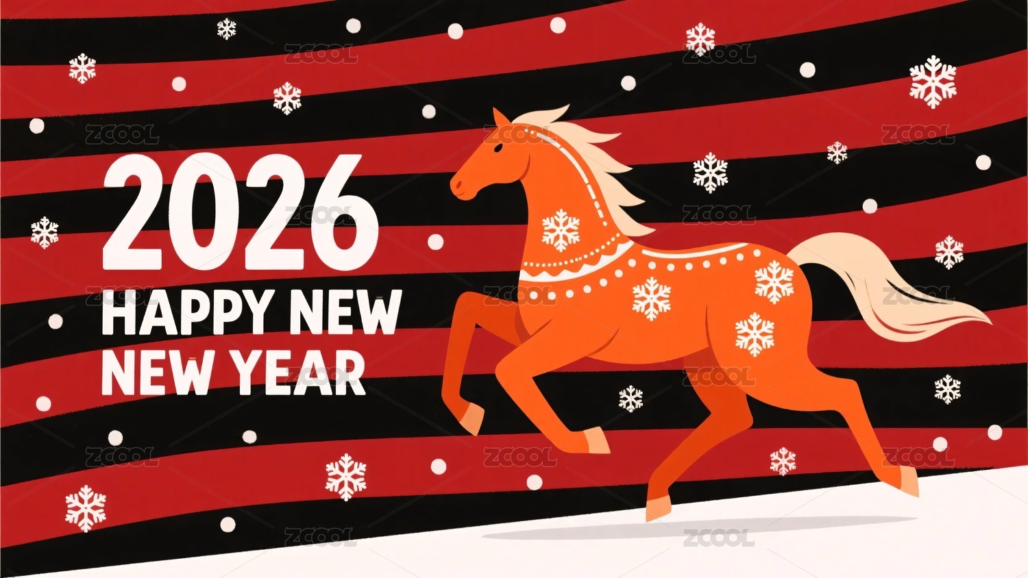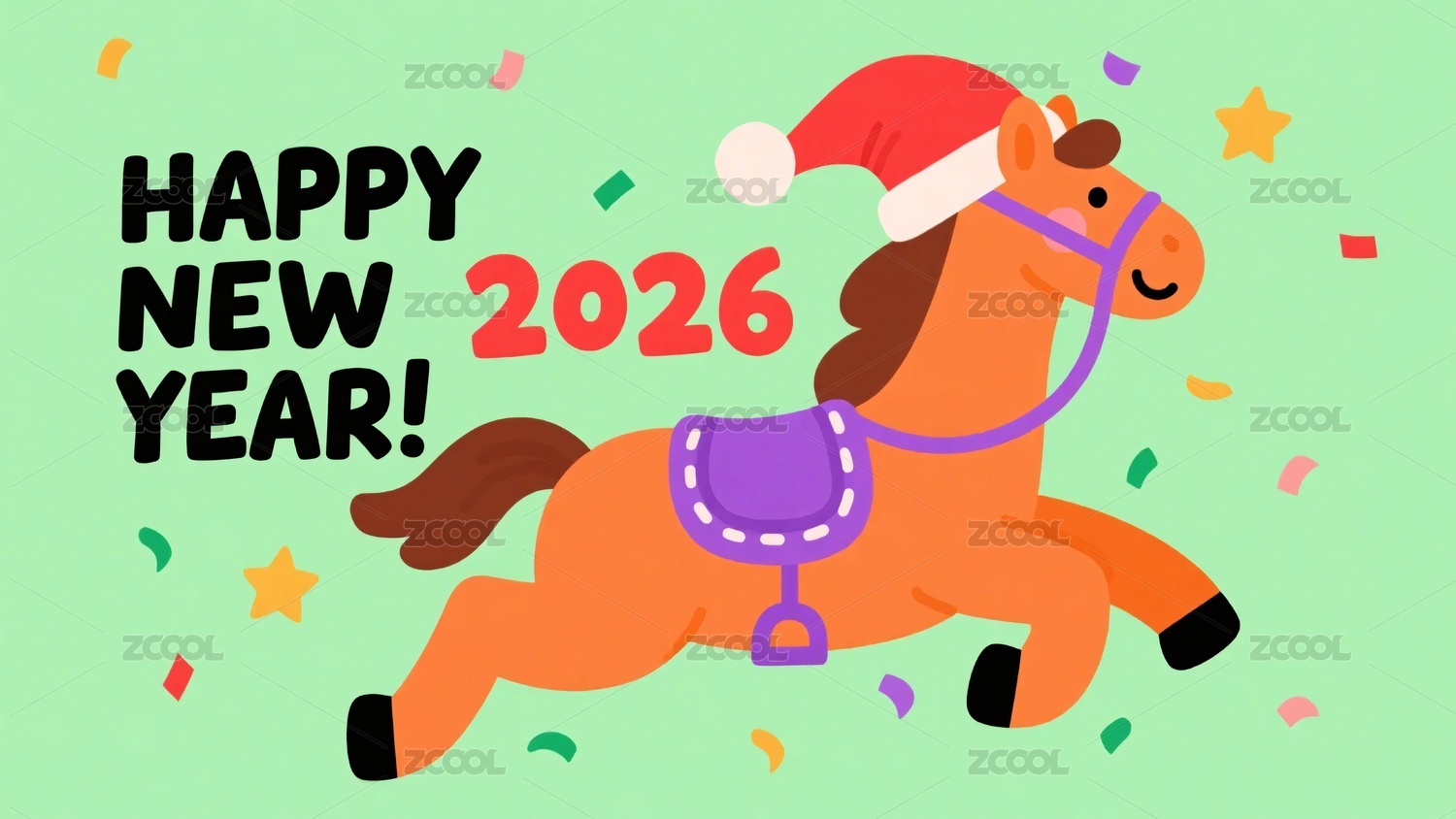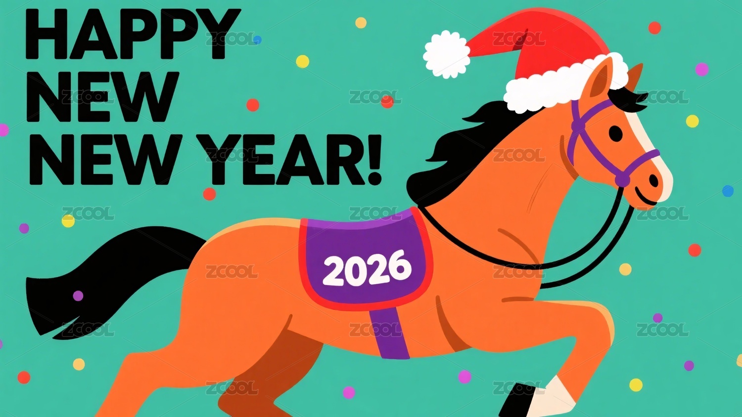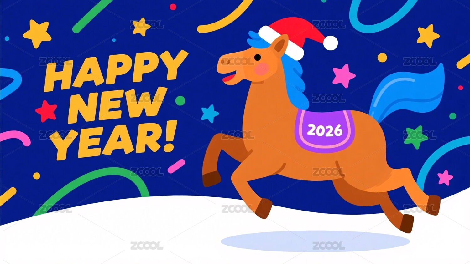小马,圣诞帽,新年,彩带,插画,贺图,卡通,节日,装饰,星星