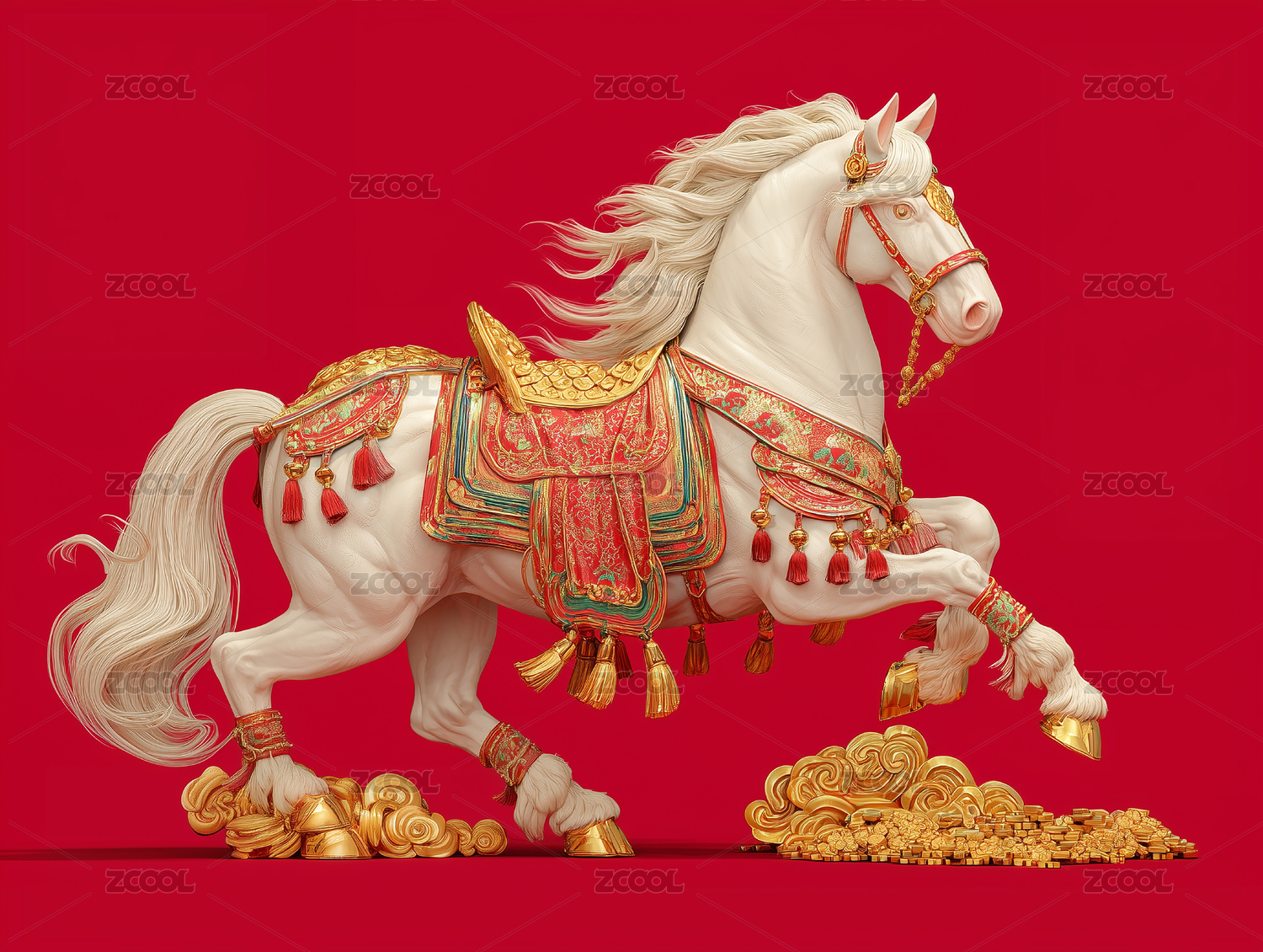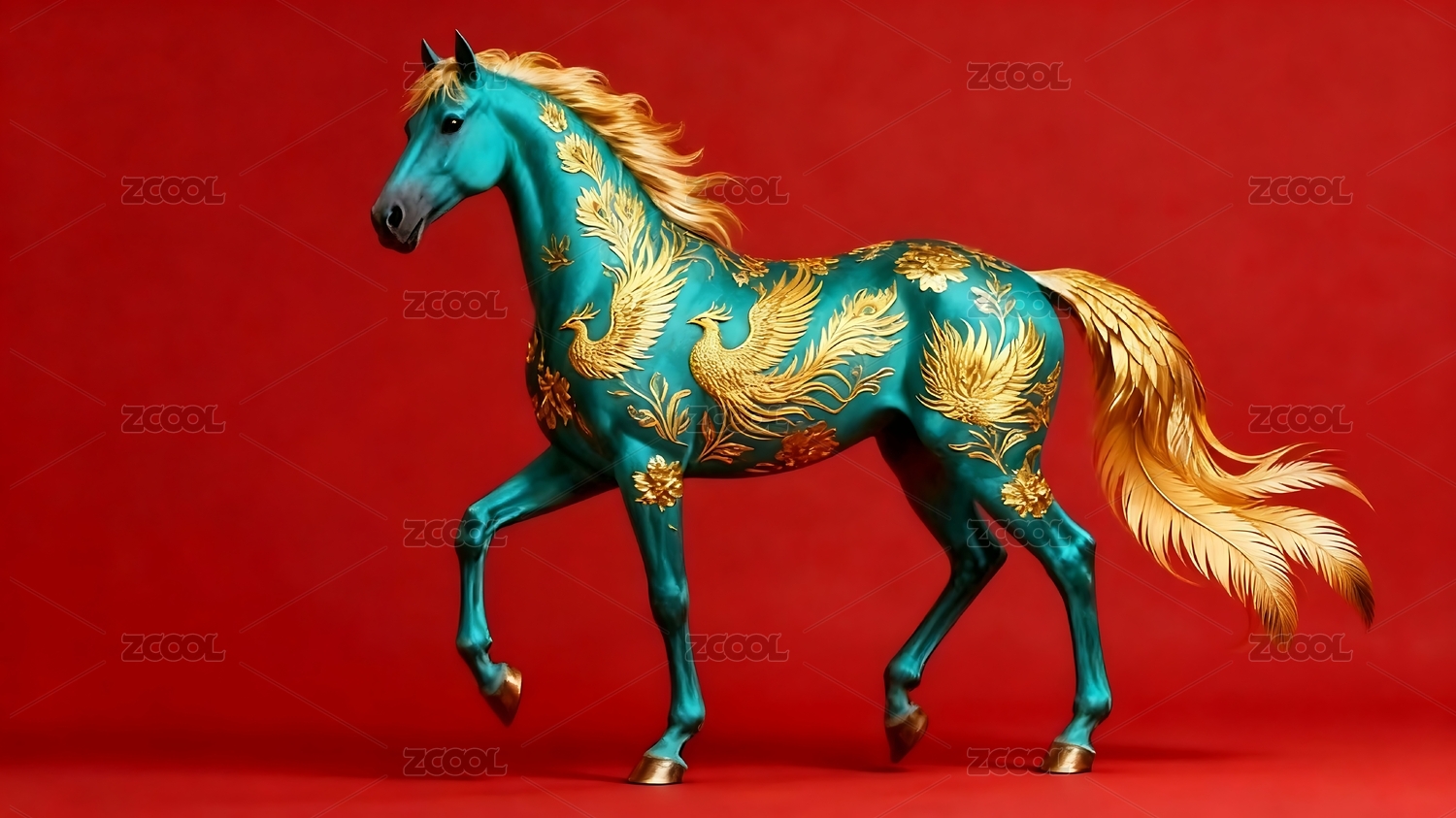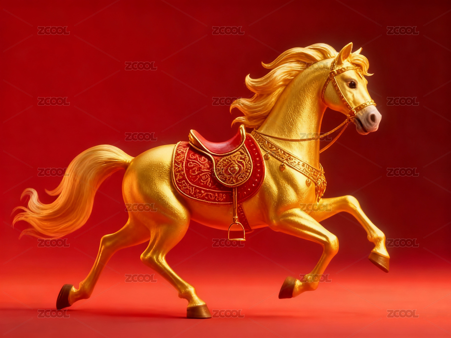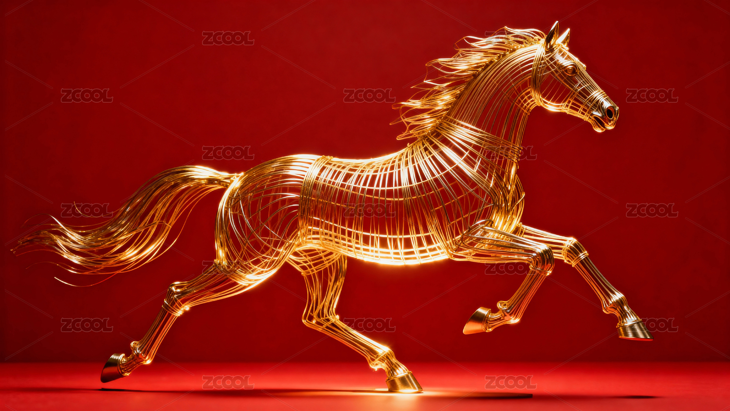 中国风金色汗血宝马奔跑的红色喜庆背景
