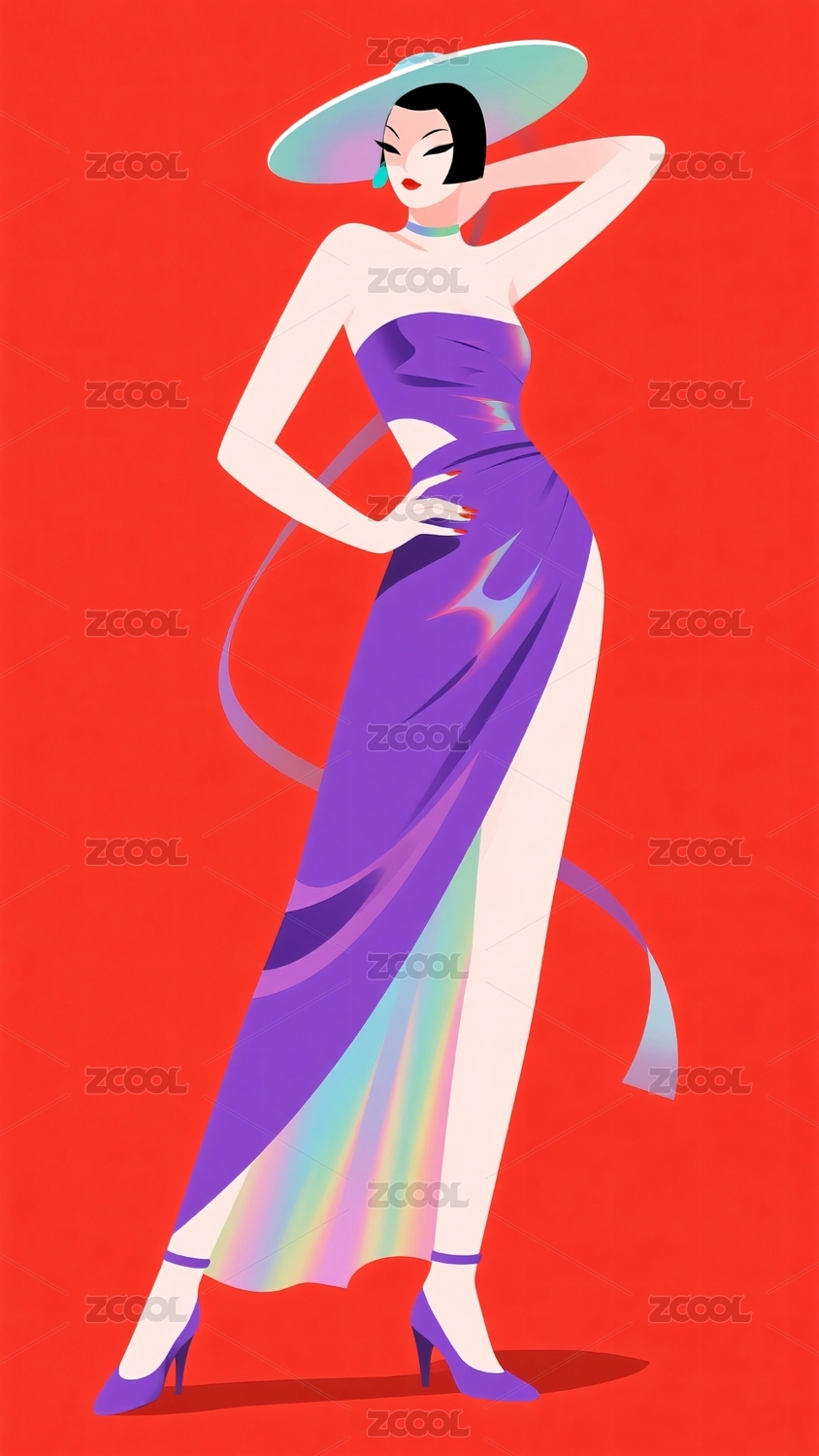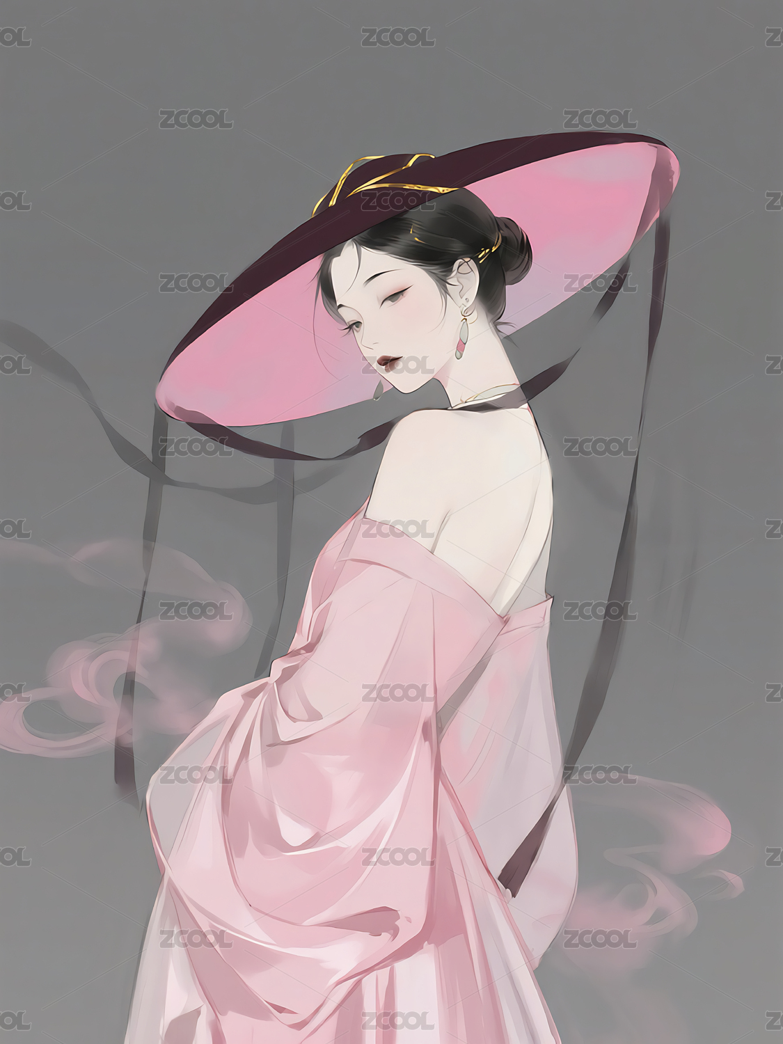 时尚,美女,插画,壁纸,遮阳帽,粉色,人物,扁平风,节日
