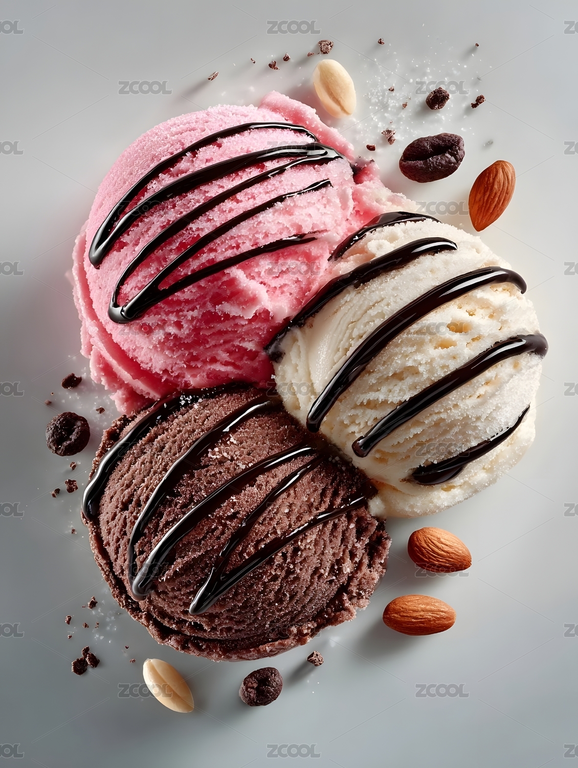 装饰,甜点,饼干,花生,水果,浆果,糖粉,黑色,白色,冰淇淋