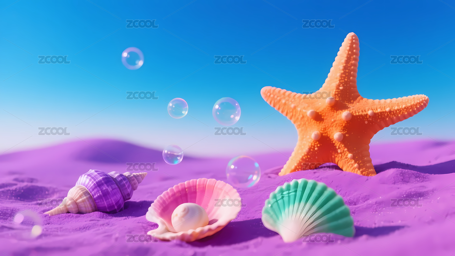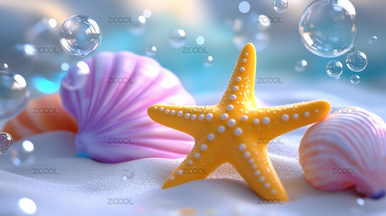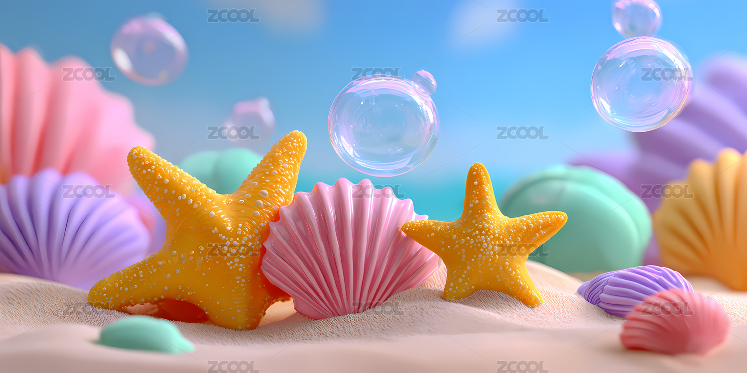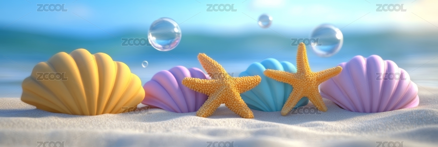 梦幻海滩贝壳与泡泡
