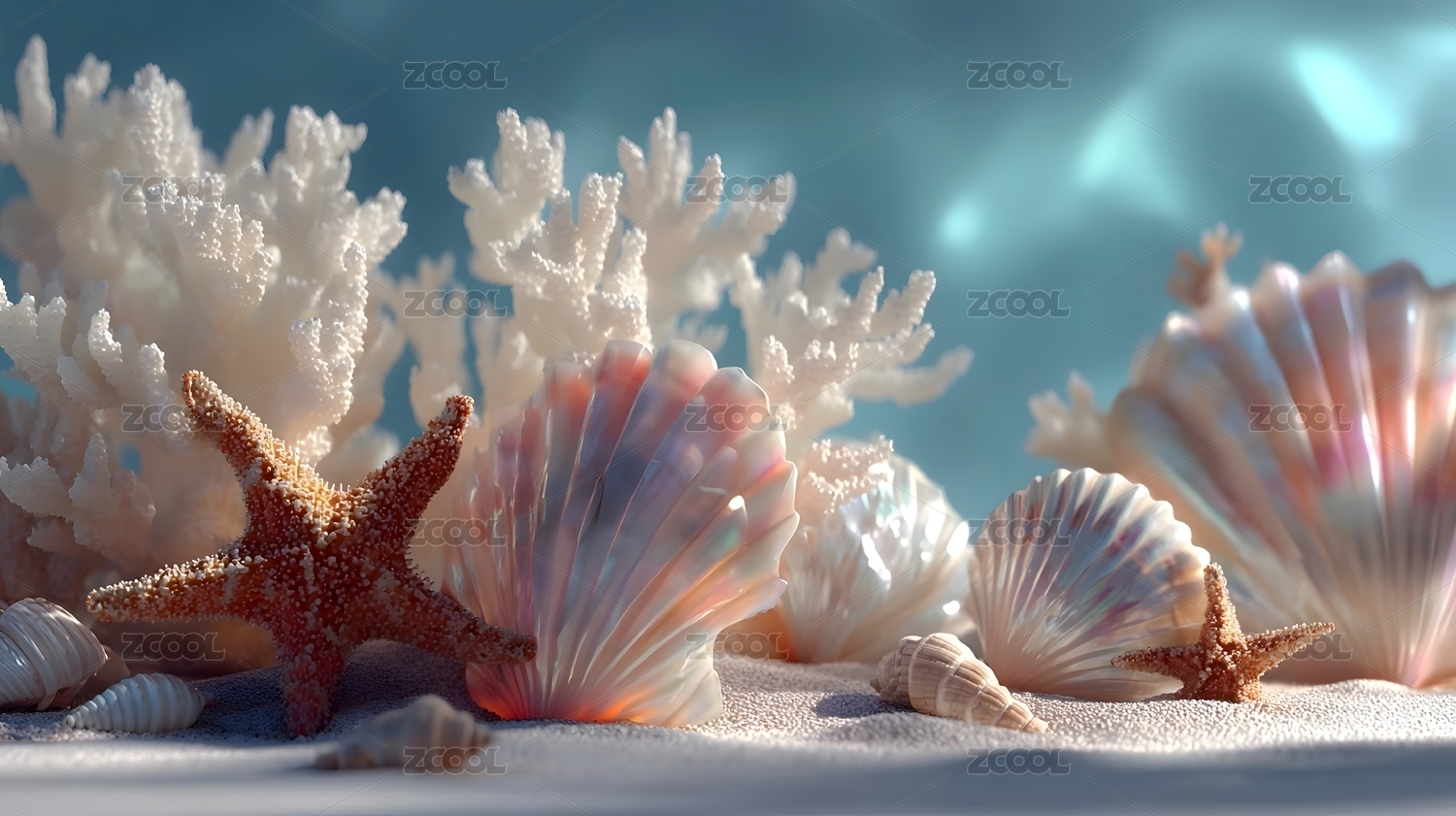 梦幻海滩贝壳与珊瑚