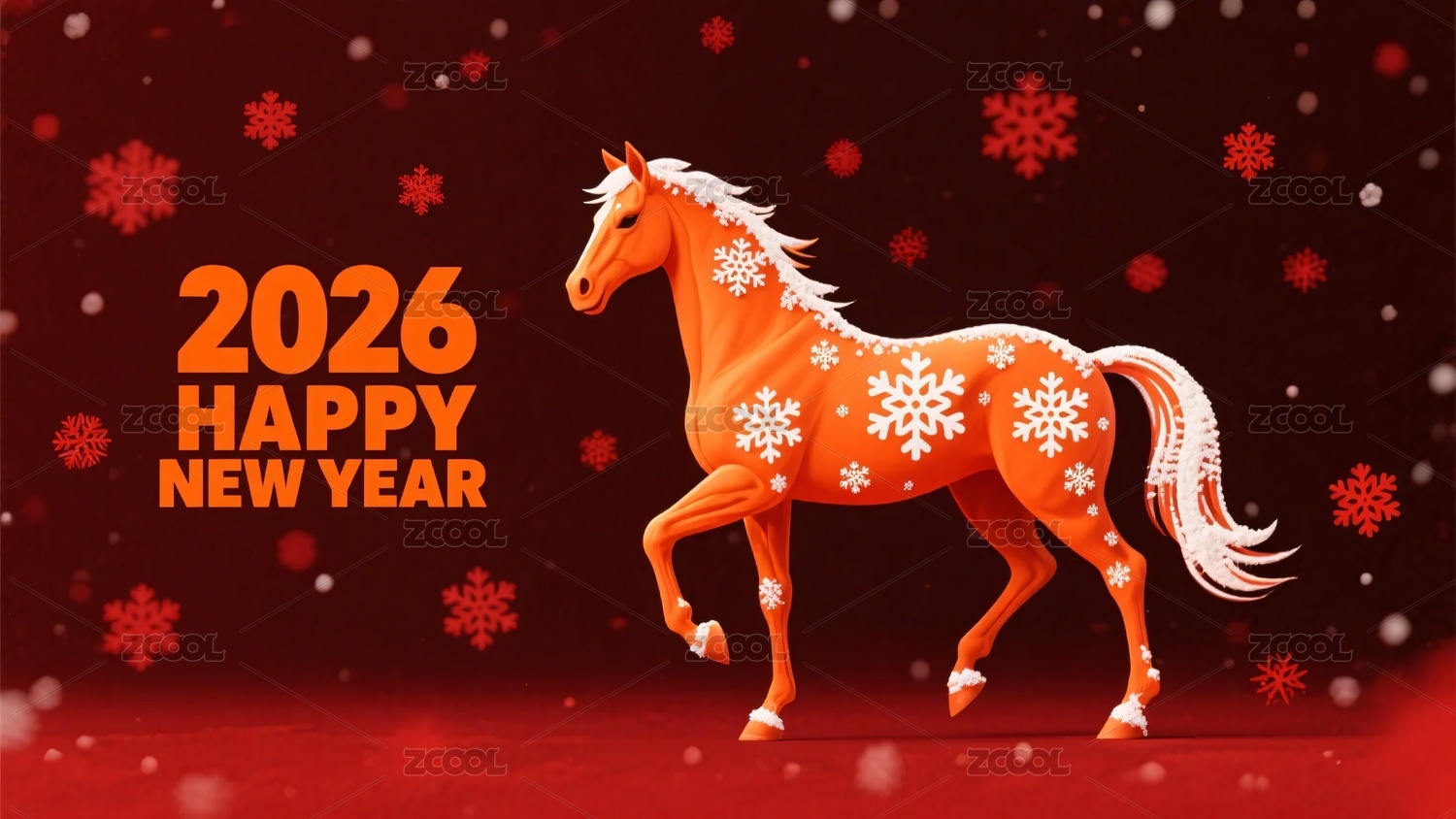 雪花,新年,红色,雪地,插画,新年祝福,动物,欢庆,背景,节日