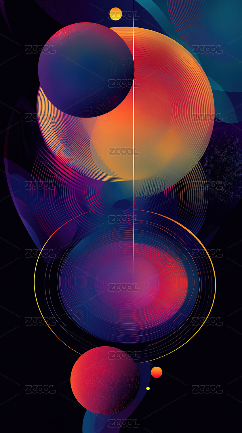 时尚孟菲斯风格蓝色几何图形插画商业背景