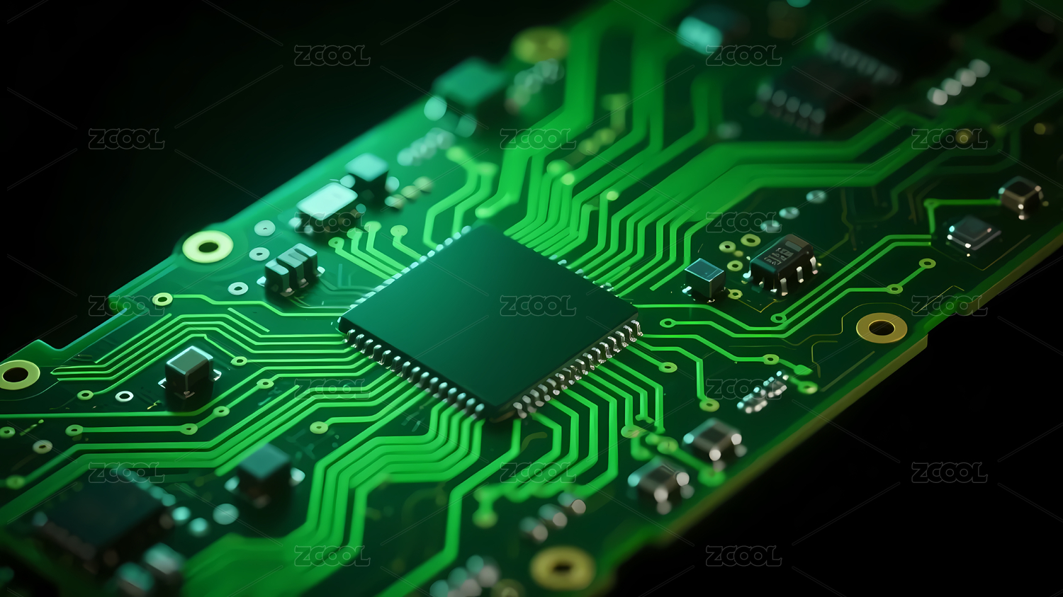 绿色芯片电路元件深色背景