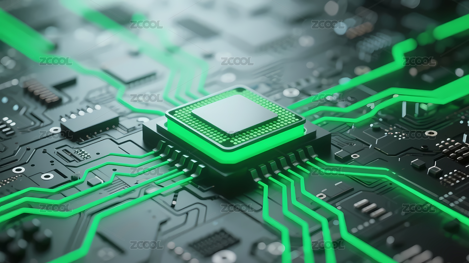 主视觉,商业,壁纸,展示,场景,元素,绿色,芯片,科技,电路