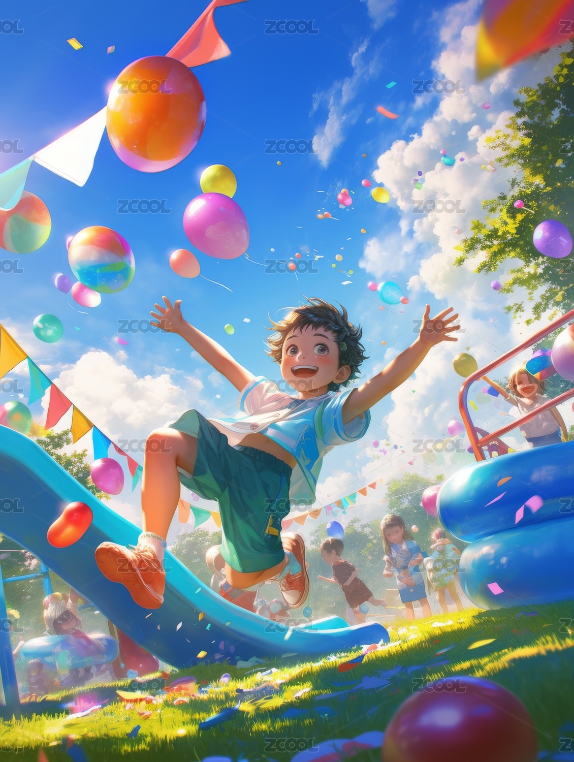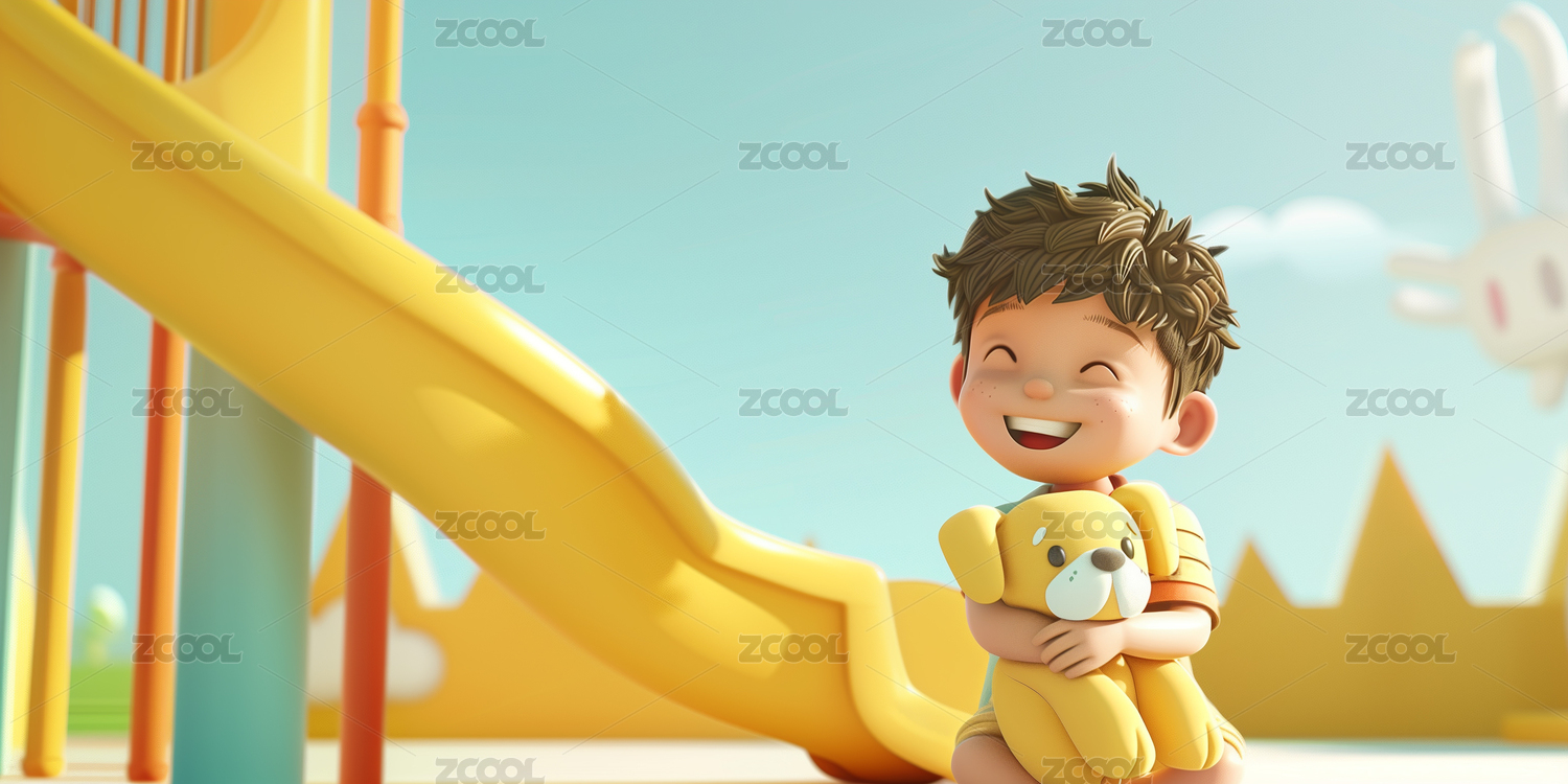 卡通三维男孩在游乐场