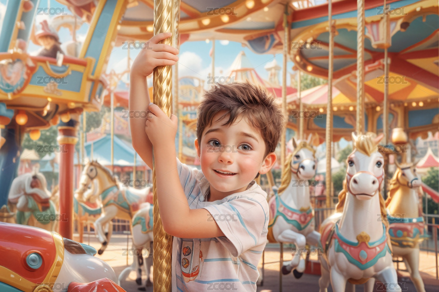 欢乐时光:旋转木马上的笑容