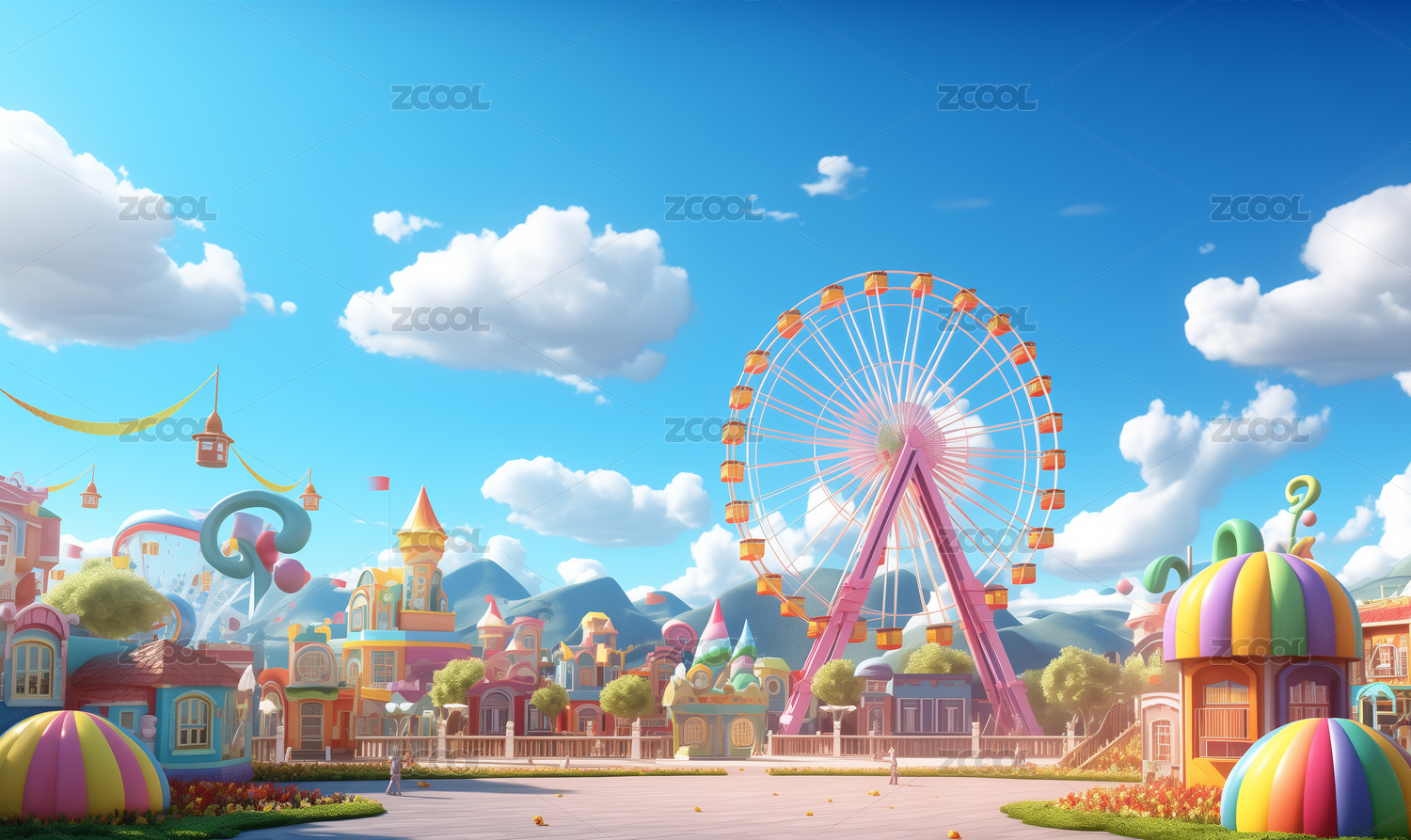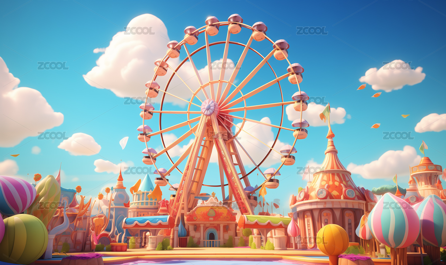 卡通风格游乐场摩天轮