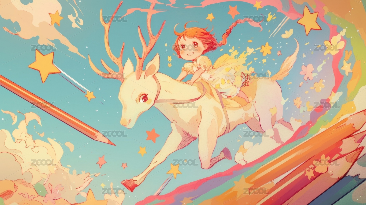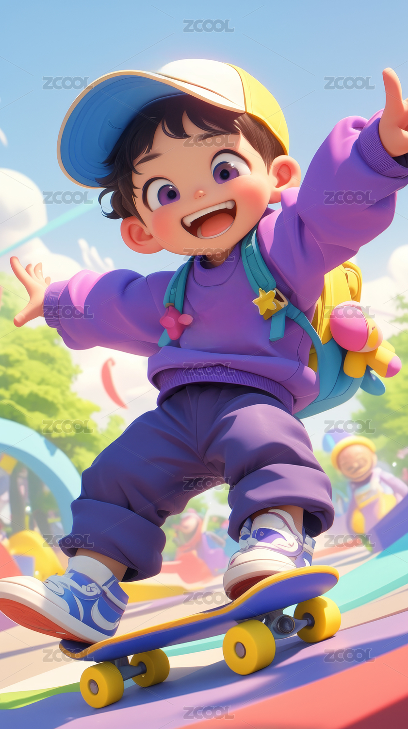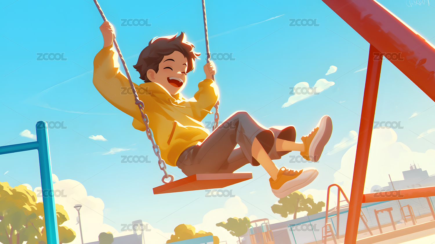 卡通可爱奔跑的男孩天空气球梦幻治愈插画