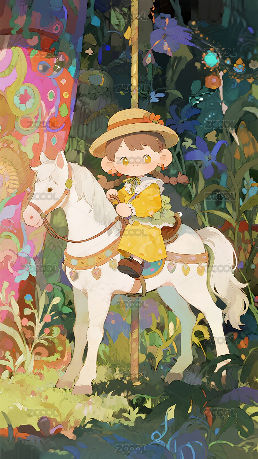 儿童,旋转,木马,欢笑,夜晚,灯光,游乐场,彩虹,卡通,背景