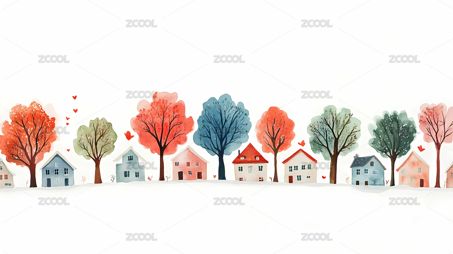风景,绘画,艺术,树木,建筑,传统,美丽,色彩,插画,创意