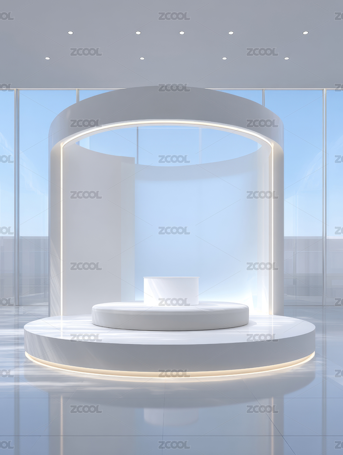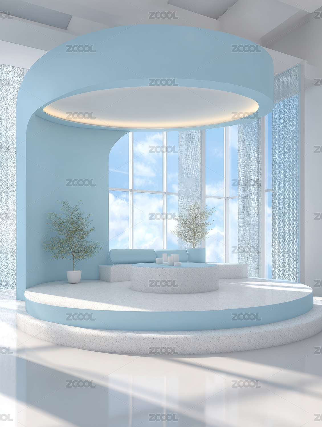 现代,简约,室内,设计,圆形,舞台,玻璃,植物,城市,景观