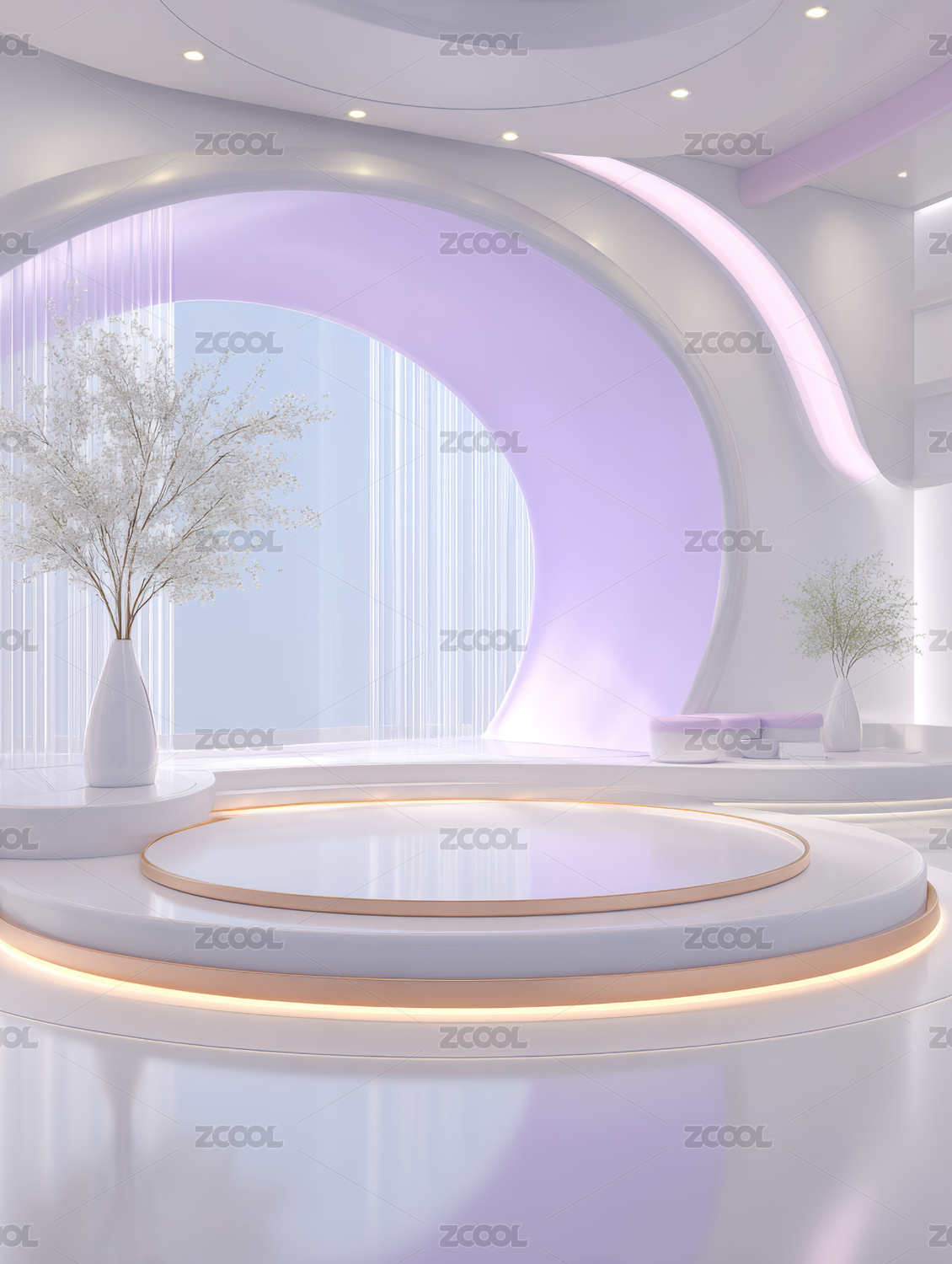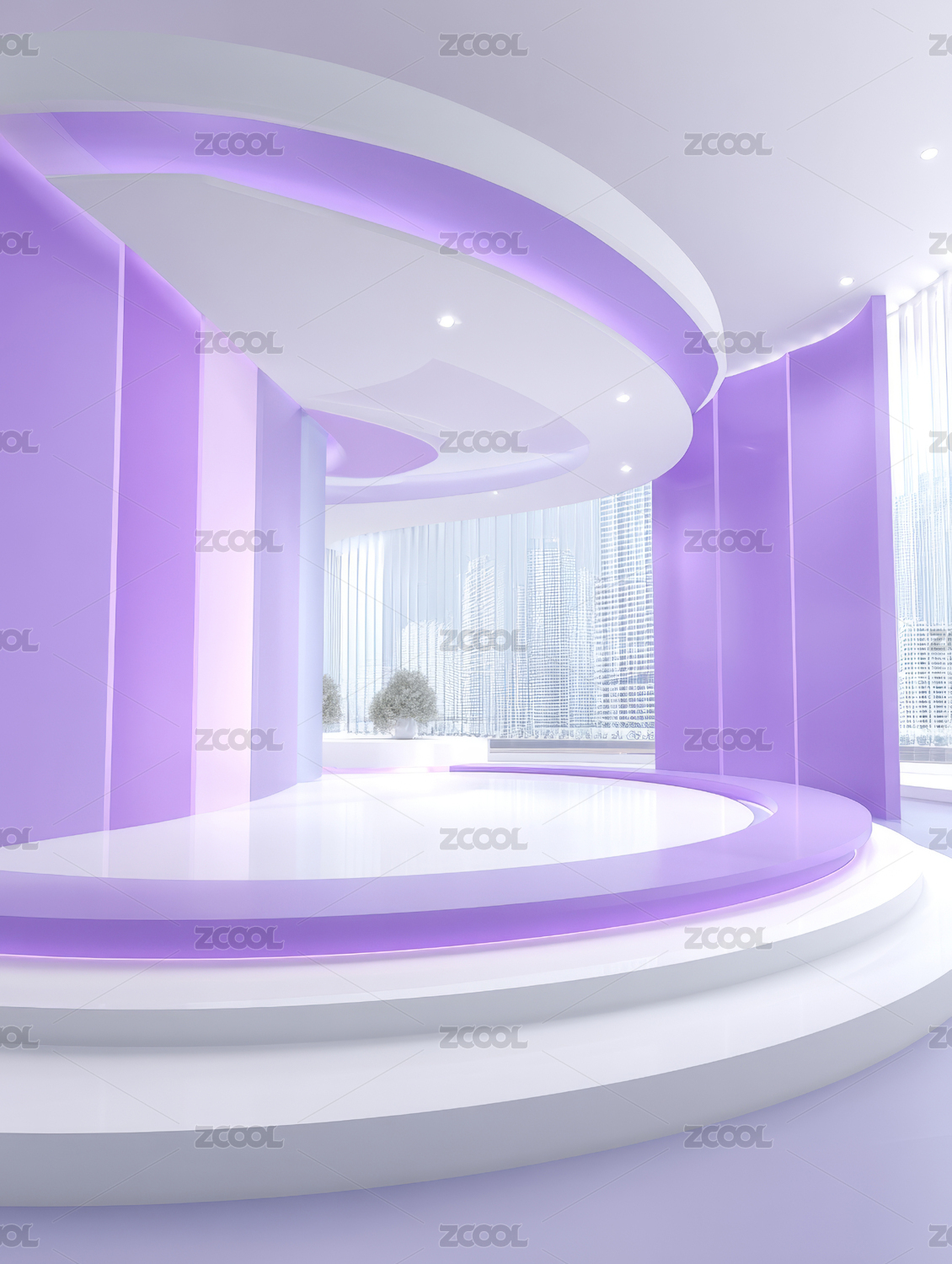 现代,简约,室内,设计,紫色,圆形,柱子,植物,光影,建筑
