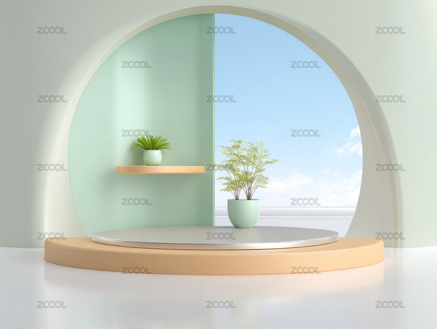 阳台,植物,拱门,木质,平台,现代,设计,窗外,风景,室内